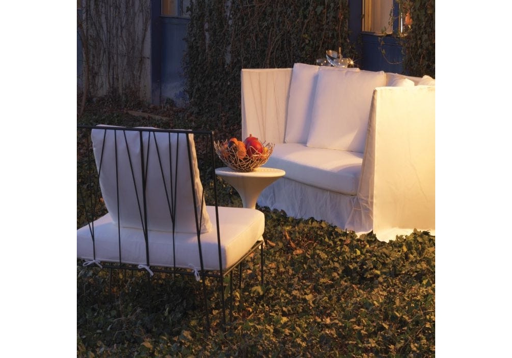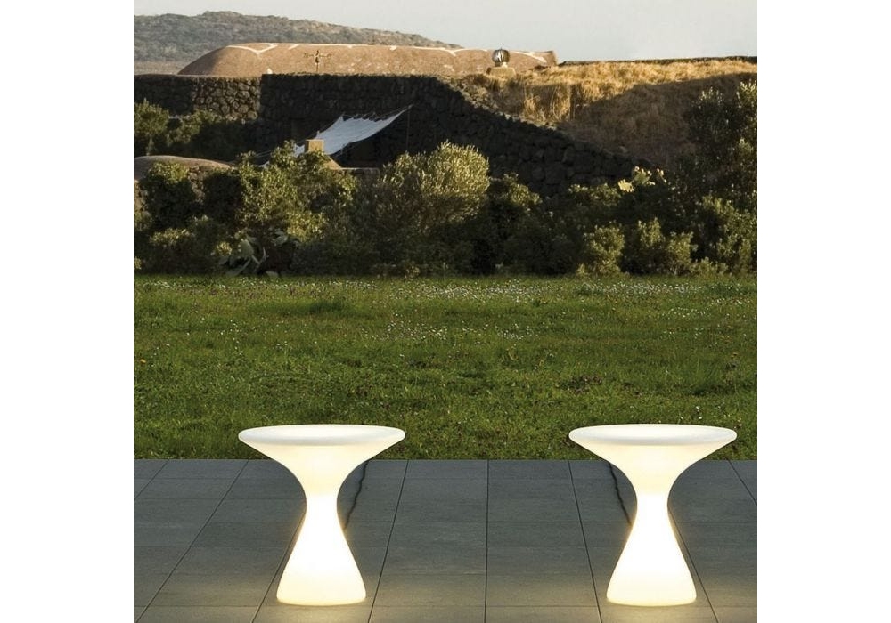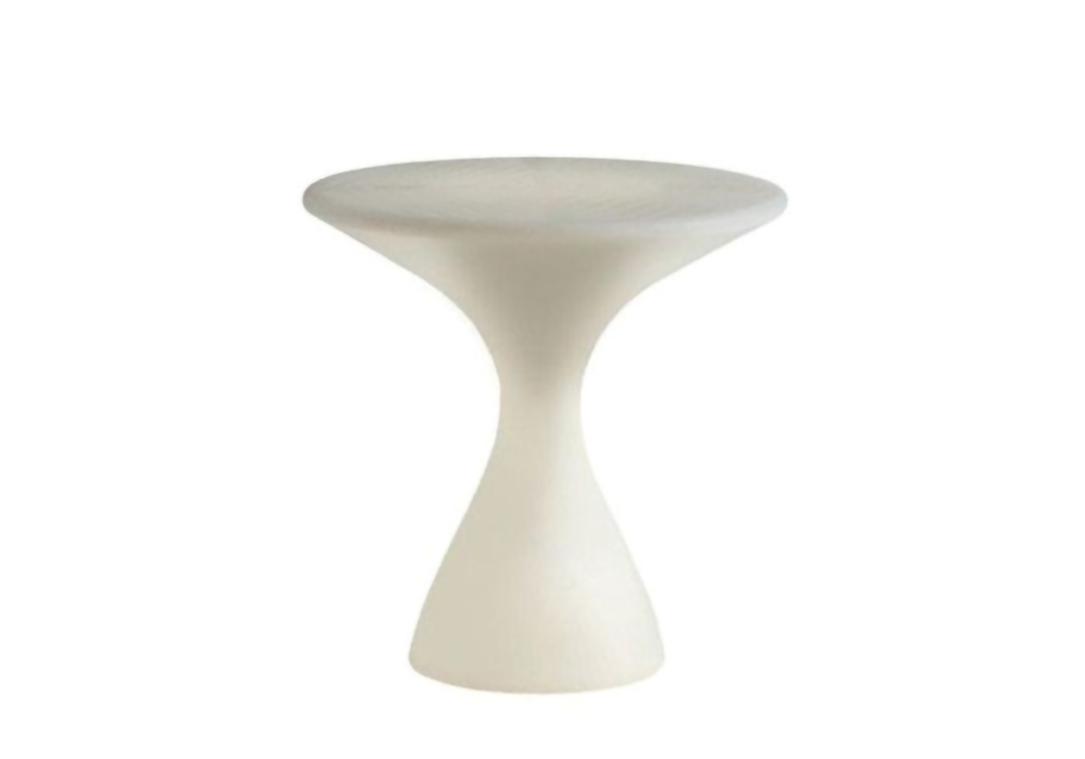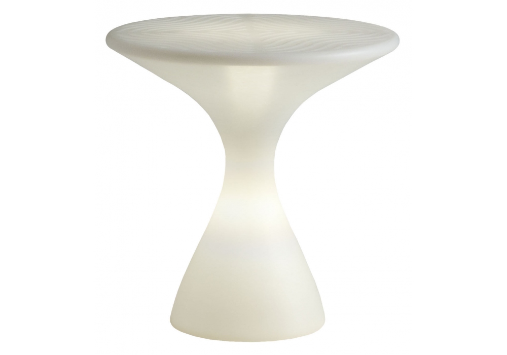 Kissino von Miki Astori für Driade entworfen, ist ein Couchtisch mit Struktur und Platte aus weißem Polyethylen und opalweiß für die Version mit integriertem Licht. Auch für den Außenbereich geeignet.