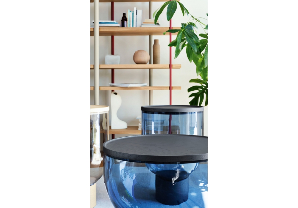 Mastea von Matteo Zorzenoni für Miniforms entworfen, ist ein Couchtisch mit Basis und Platte aus Esche, Struktur aus geblasenem Muranoglas. Erhältlich in verschiedenen Ausführungen und Größen.