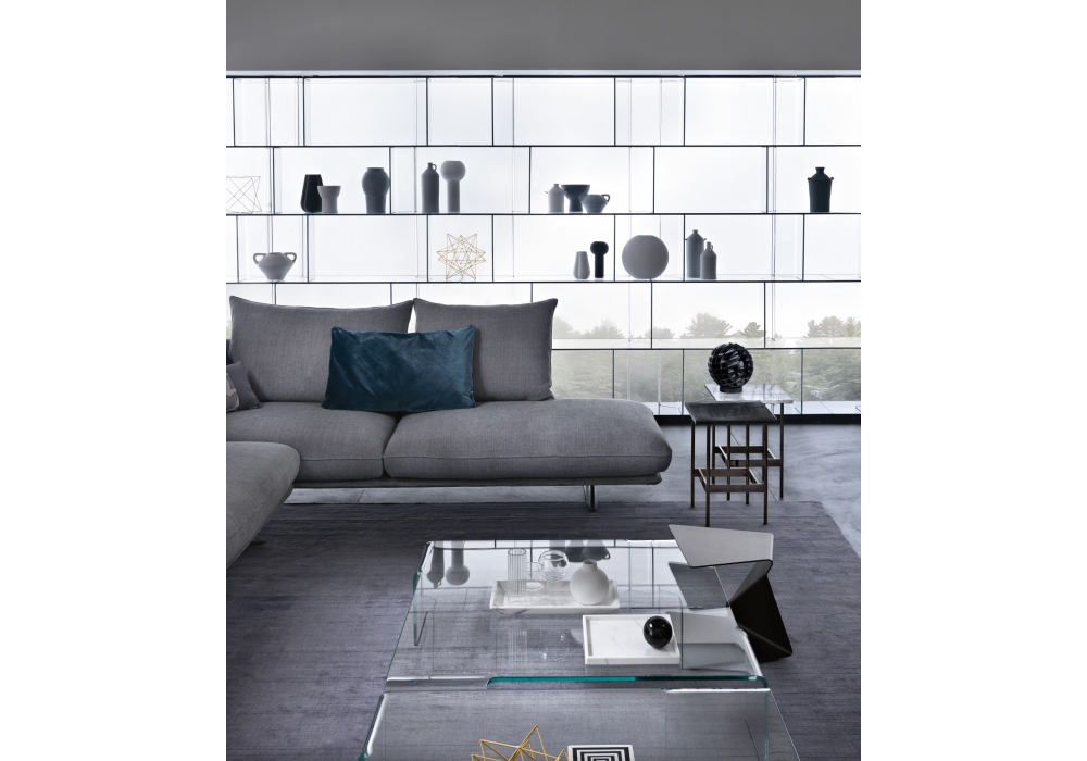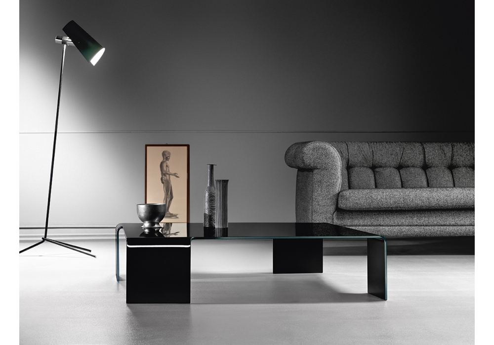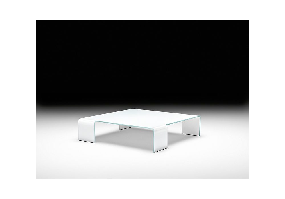 Neutra von Rodolfo Dordoni für Fiam ist ein monolithischer Couchtisch aus 12 mm gebogenem Glas.