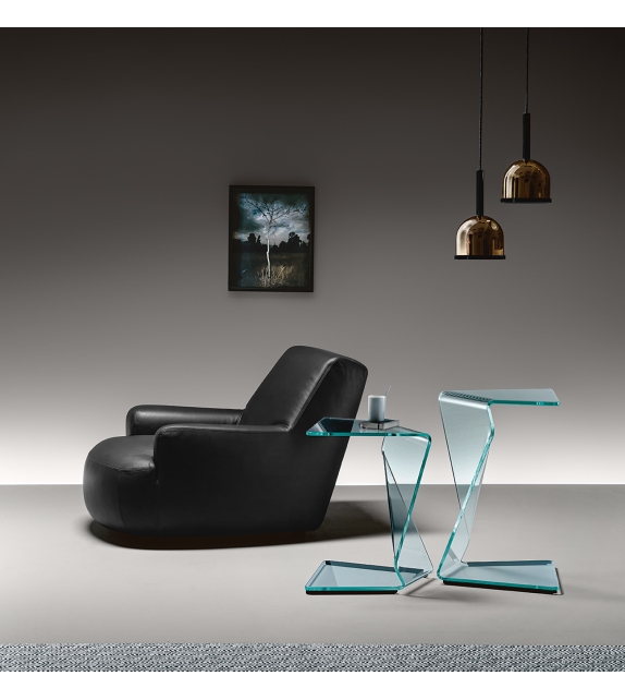 Sigmy von Aquili Alberg für Fiam entworfen, ist ein Couchtisch aus transparentem, extraleichtem, wolkigem oder black95 gebogenem Glas. Verfügbar in mehreren Größen.