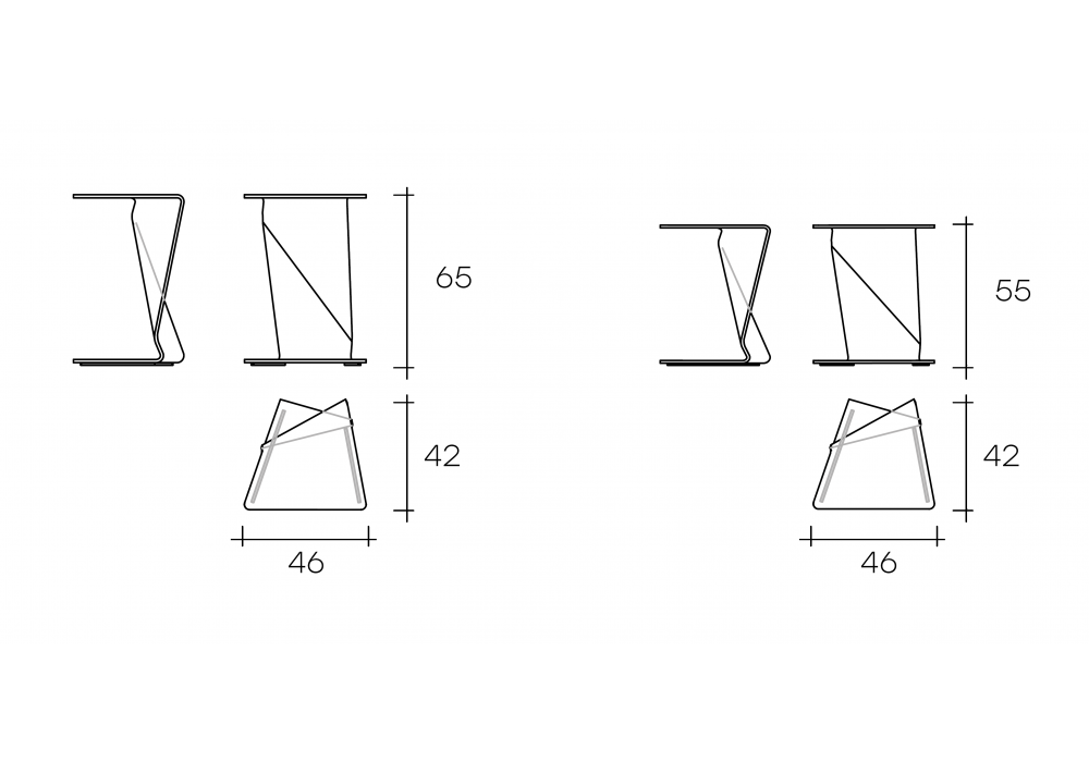 | Abmessungen | 46 x 42 x H 55 cm; 46 x 42 x H 65 cm. |