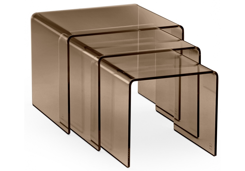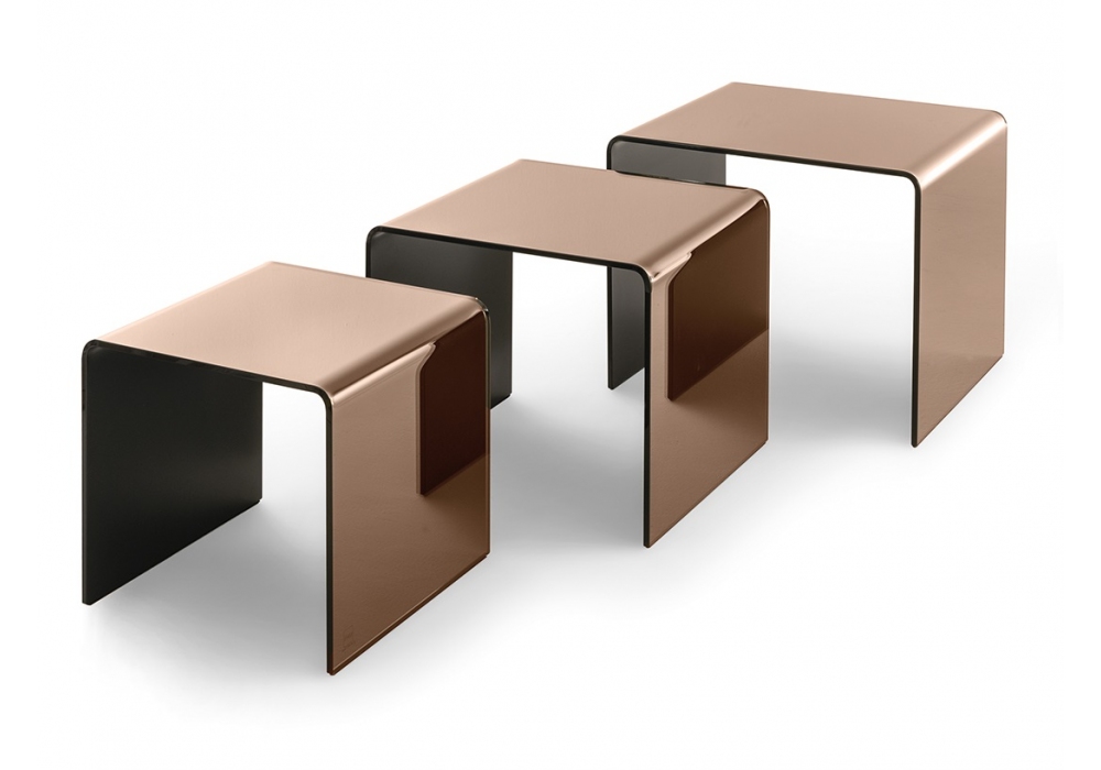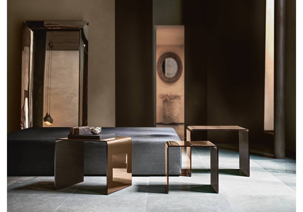 Rialto Tris von CRS Foam für Foam entworfen, ist ein Couchtisch aus gebogenem Glas. Verfügbar in verschiedenen Größen.