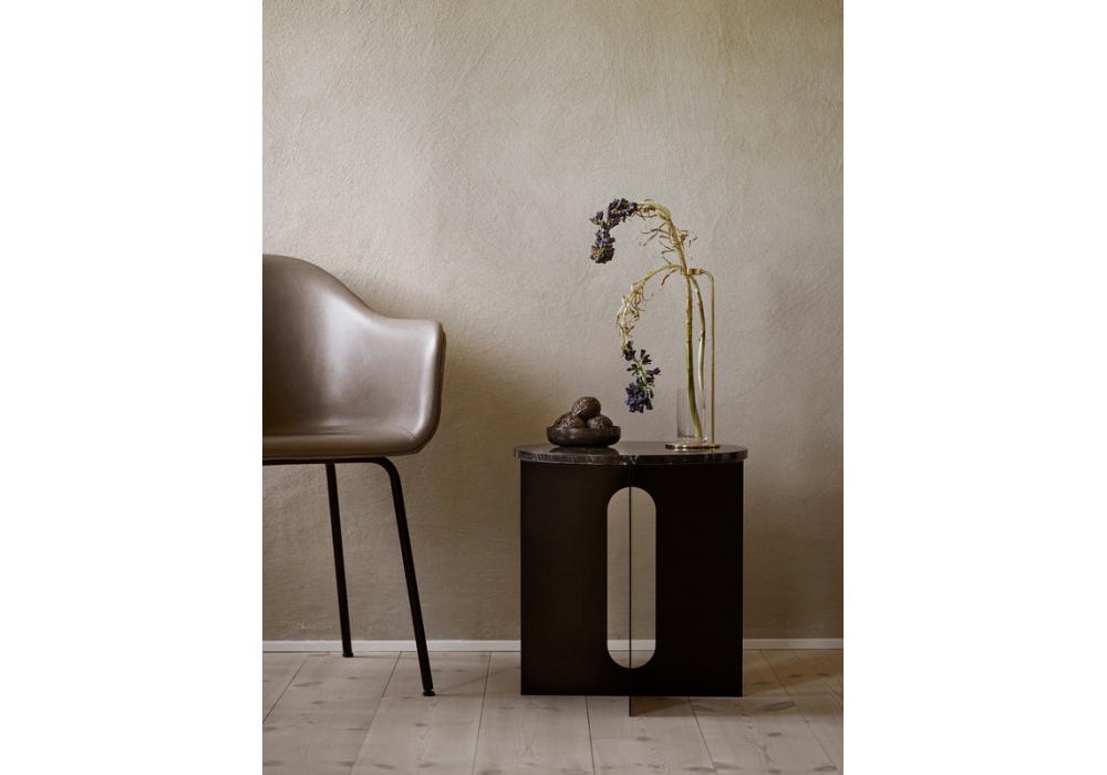 Androgyne Marble von Danielle Siggerud für Audo Copenhagen entworfen, ist ein Beistelltisch, der sich durch eine Marmorplatte und einen Stahlfuß auszeichnet. Erhältlich in verschiedenen Ausführungen.