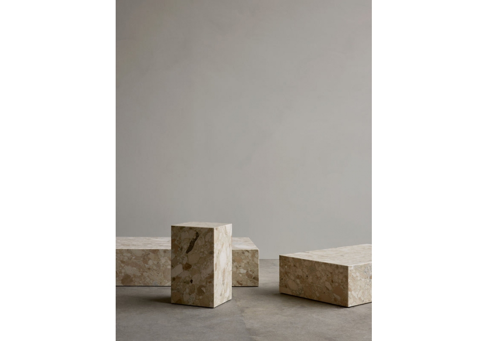 Plinth Grand von Norm Architects für Audo Copenhagen entworfen, ist ein Couchtisch aus Marmor, verfügbar in verschiedenen Ausführungen.