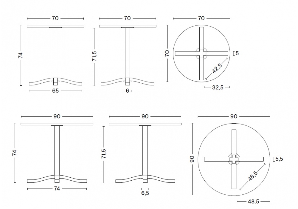 | Abmessungen | Ø 70 x H 74 cm; Ø 90 x H 74 cm. |