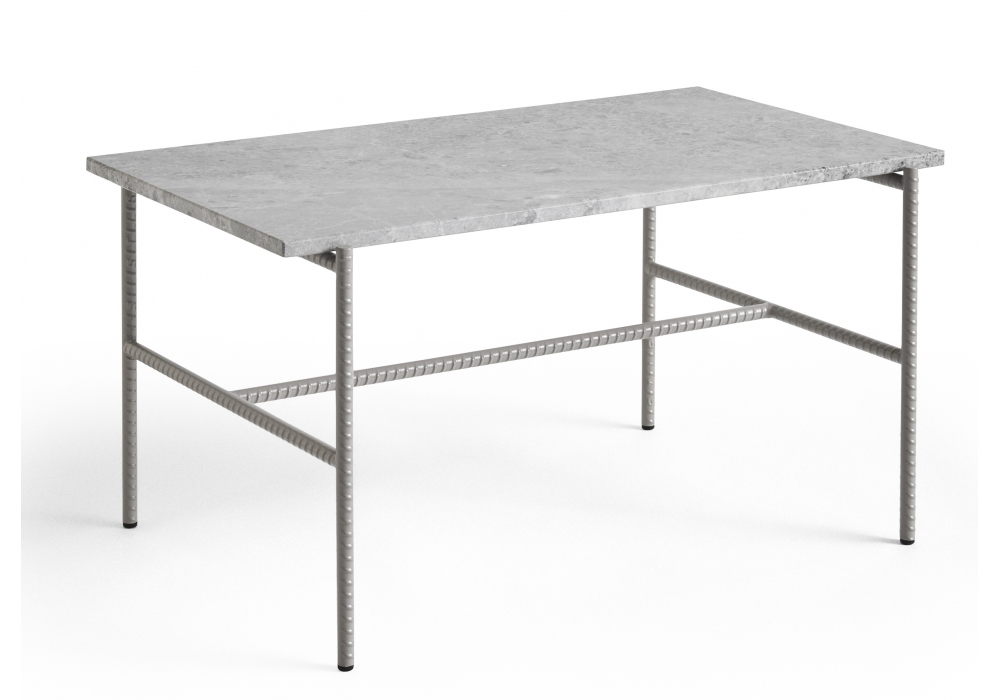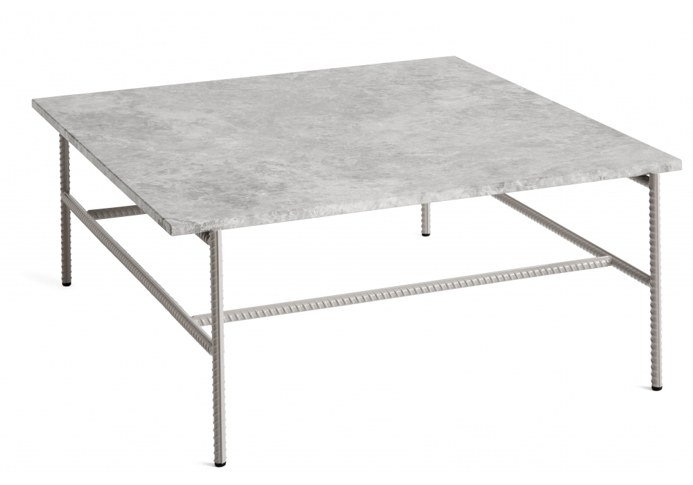 Rebar von Sylvain Willenz für Hay entworfen, ist ein Couchtisch mit polierter Marmorplatte mit abgeschrägten Kanten und pulverbeschichteter Stahlstruktur. Verfügbar in mehreren Abmessungen.