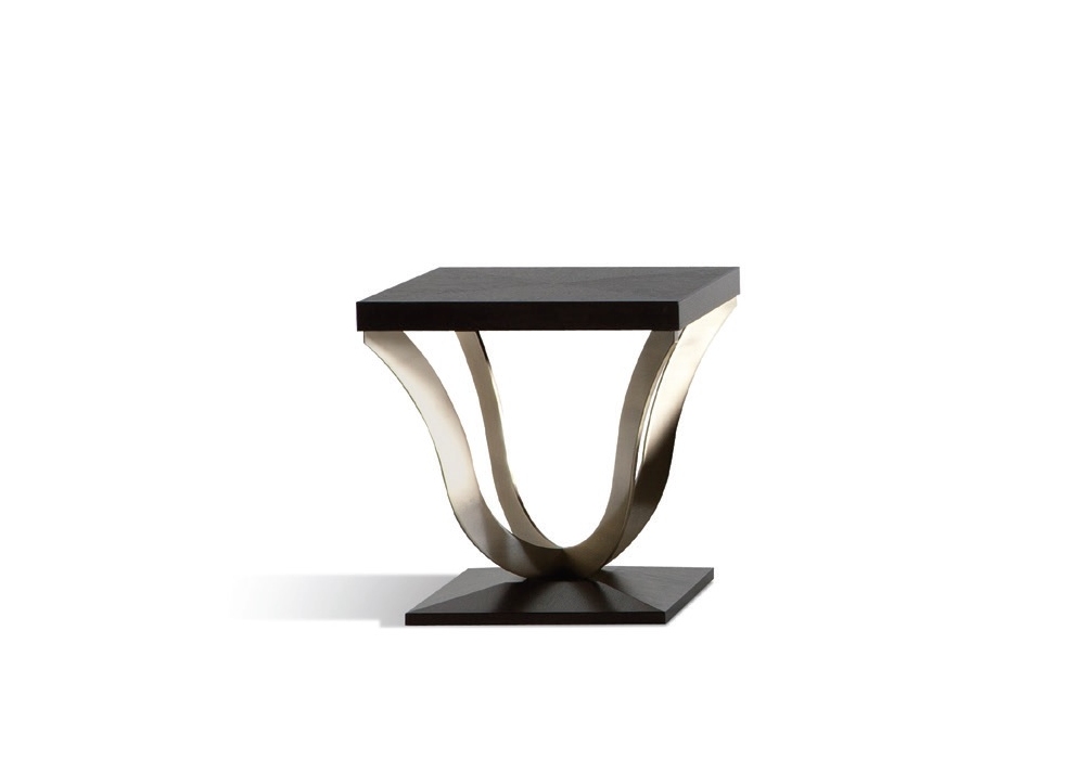 Teseo von Castello Lagravinese Studio für Opera Contemporary entworfen, ist ein kleiner Tisch mit Holzplatte und -basis und Metallstruktur. Verfügbar in mehreren Ausführungen und Abmessungen.