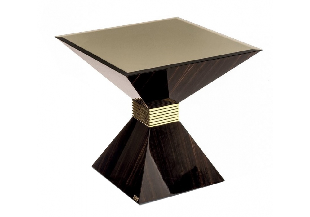 Andy von Giuseppe Viganò für Longhi entworfen, ist ein modularer Beistelltisch mit Pyramidenbasis. Die Struktur ist aus Holzessenz, glänzend lackiert oder mit Leder bezogen. Platte aus Spiegel oder Marmor. Auf Anfrage ist es mit dem oberen Modul in einer anderen Ausführung oder mit einem Behälterloch aus Metall verfügbar.