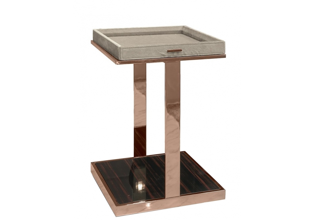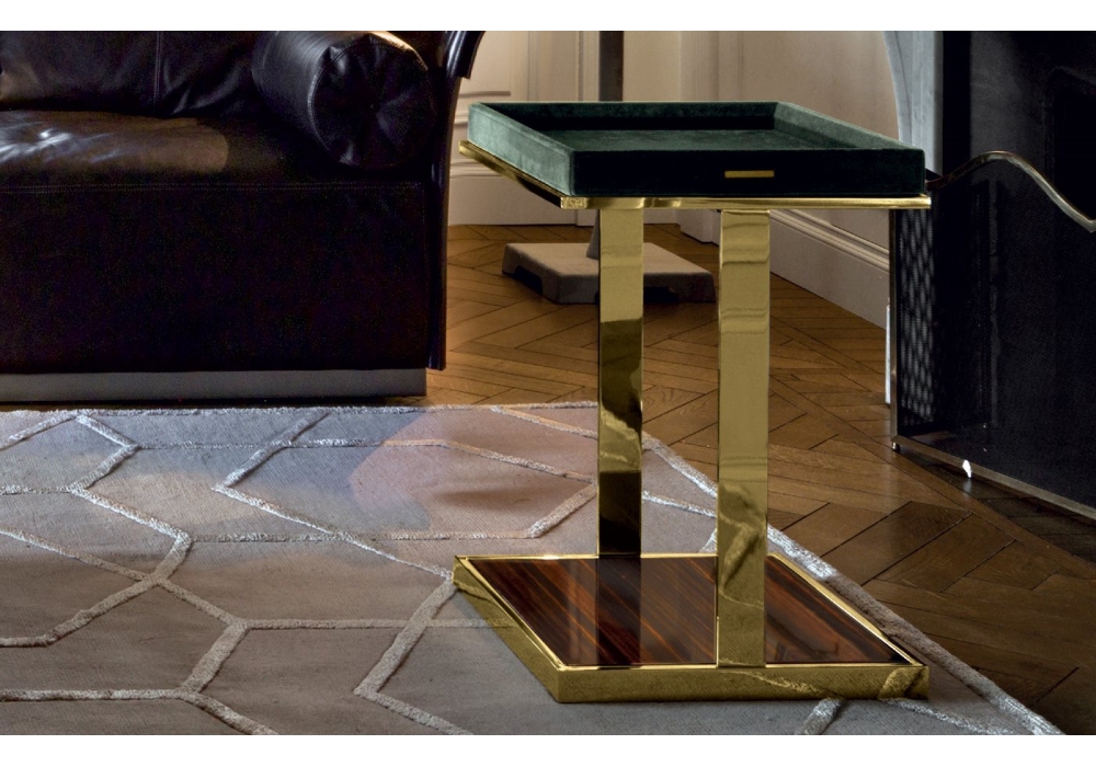 Louis von Giuseppe Iasparra für Longhi entworfen, ist ein Couchtisch mit Metallstruktur. Abnehmbares Tablett mit Leder-, Samt- oder Holzbezug. Basis und Platte aus Holz in glänzender oder matter Ausführung. Verfügabr in mehreren Abmessungen.