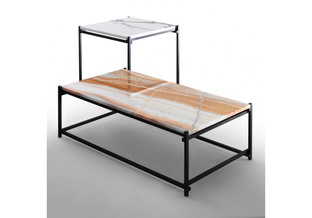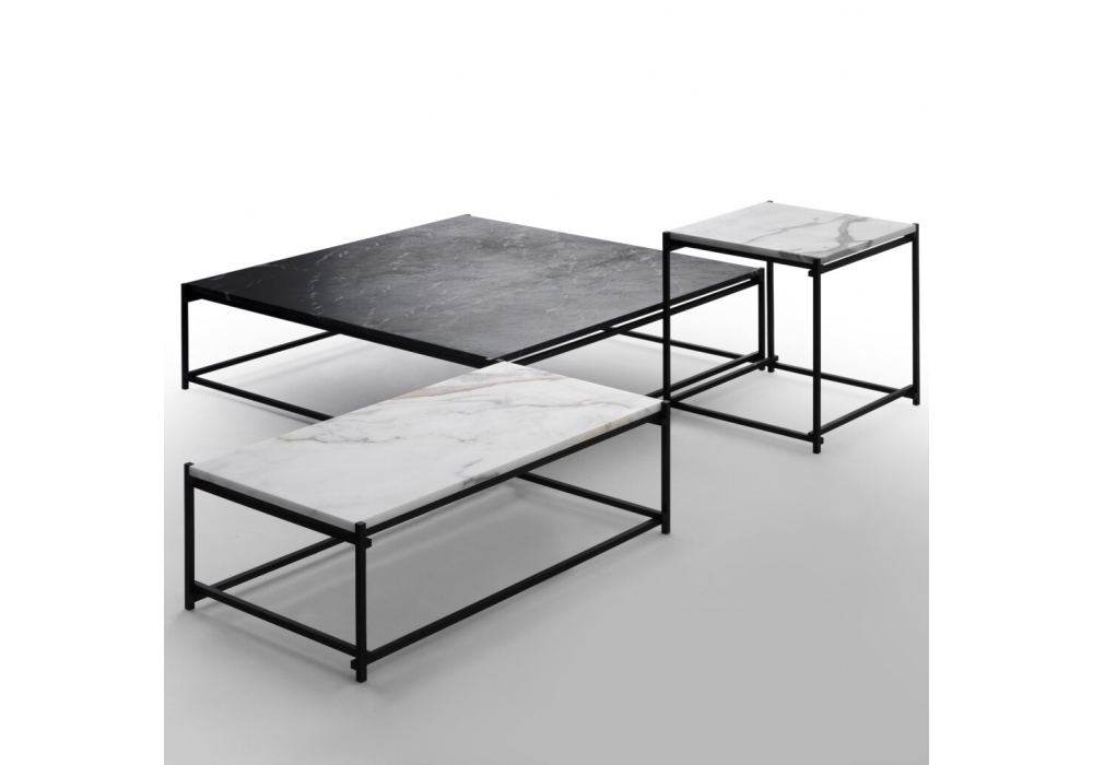 Nodo von Enzo Berti für Kreoo entworfen, ist ein Couchtisch mit einer Metallstruktur aus dünnen Elementen mit quadratischem Querschnitt, in die die Platte eingesetzt wird. Marmorplatte in verschiedenen Ausführungen. Verfügbar in mehreren Abmessungen.