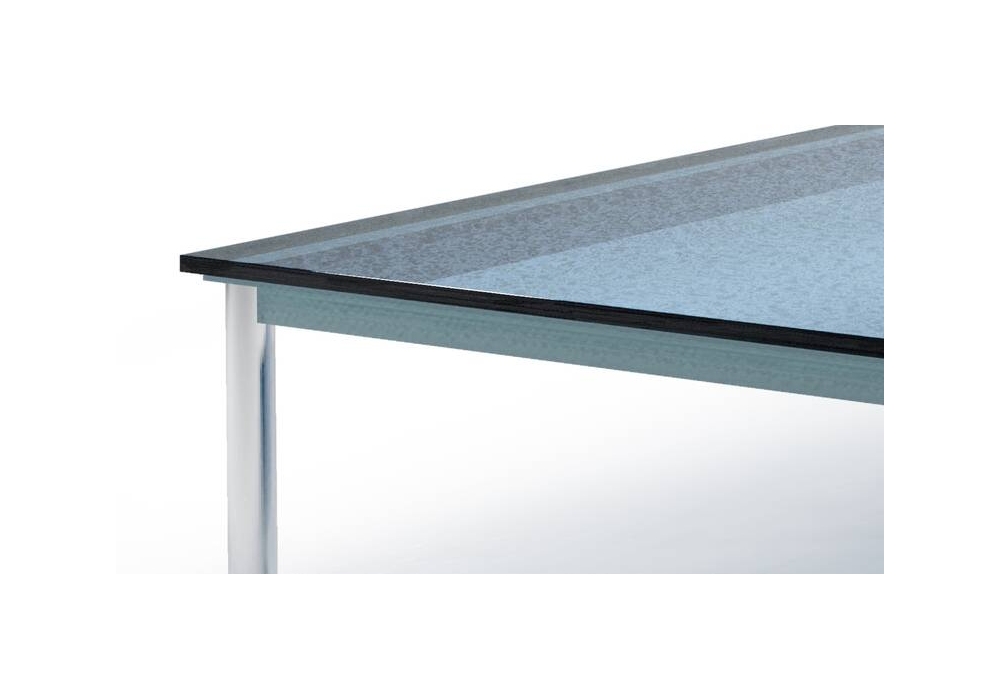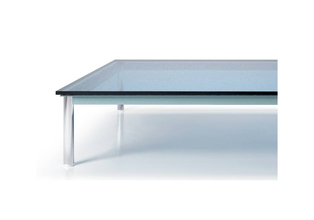 10 Table en Tube Basse, Grand Modèle von Le Corbusier, Pierre Jeanneret, Charlotte Perriand für Cassina entworfen, ist ein Couchtisch mit Kristall-, geformter oder farbiger Glasplatte und verchromten Beinen mit lackierter Struktur. Verfügbar in mehreren Ausführungen und Abmessungen.