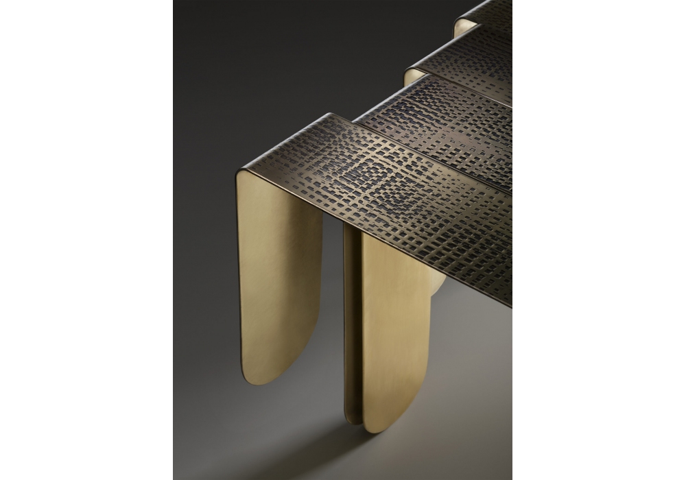 Xilo von Delineo Design Studio für DeCastelli entworfen, ist ein Couchtisch aus Messing, verfügbar in verschiedenen Ausführungen.