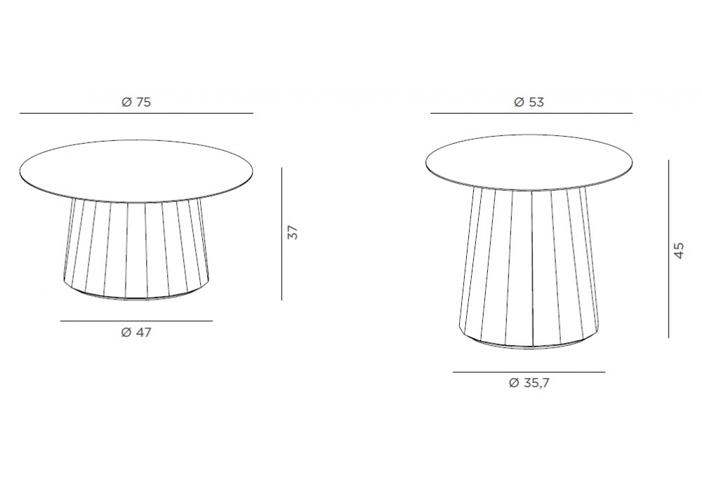| Abmessungen | • Ø 53 x H 45 cm; • Ø 75 x H 37 cm |