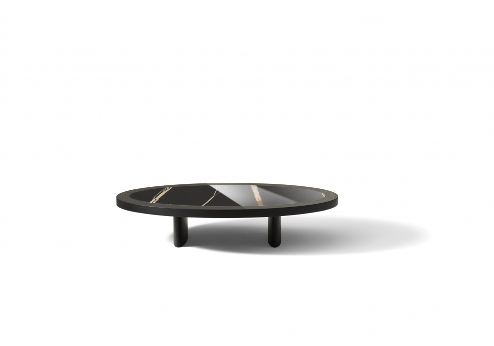 Table Monta von Charlotte Perriand für Cassina entworfen, ist ein Couchtisch mit Holzstruktur und Marmorplatte.