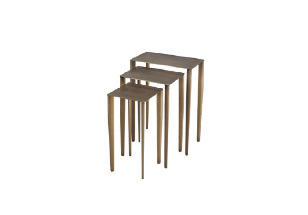 Tris von Riflessi entworfen, ist ein 3er-Couchtisch-Set mit Struktur und Platte aus lackiertem oder handgebürstetem Metall.