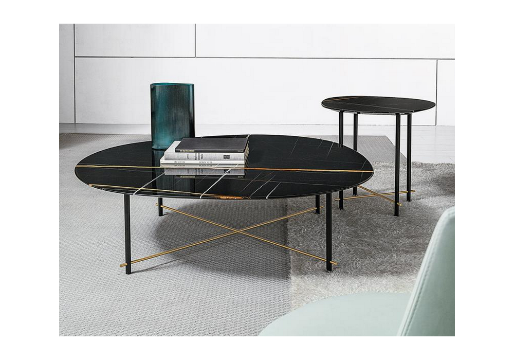 Shanghai von Castello Lagravinese für Casamilano entworfen, ist ein Beistelltisch mit Marmorplatte und Untergestell aus mattschwarz lackiertem Metall und gebürstetem Messing.