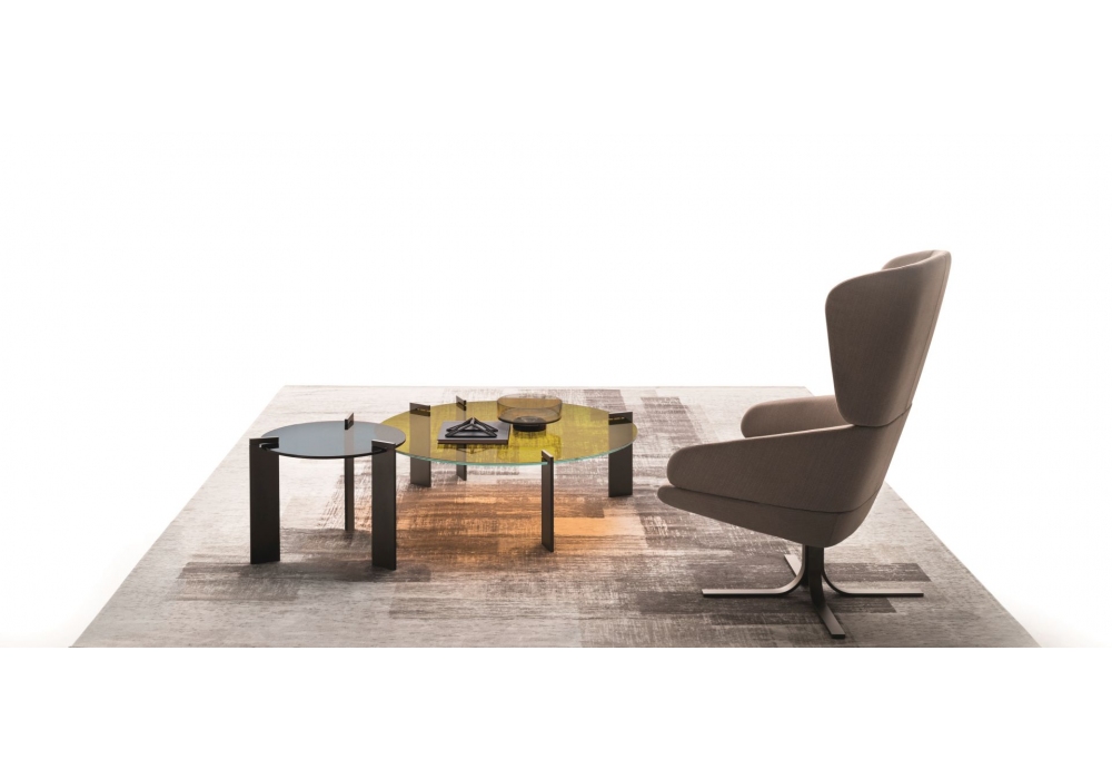 Aulos von Stefano Spessotto für Ditre Italia entworfen, ist ein Couchtisch mit lackierter Metallstruktur und Glasplatte. Erhältlich in verschiedenen Ausführungen und Größen.
