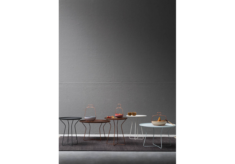 Tuft von Enrico Cesana für Alf Dafrè entworfen, ist ein Couchtisch mit lackierter oder matt lackierter Metallstruktur. Auf Wunsch ist es möglich, oben einen Holzeinsatz hinzuzufügen.
