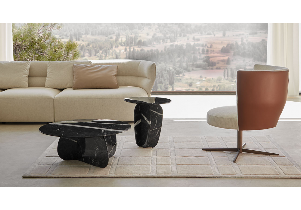 Coral von Arik Levy für Punt entworfen, ist ein Beistelltisch aus Nero Marquina-Marmor.
