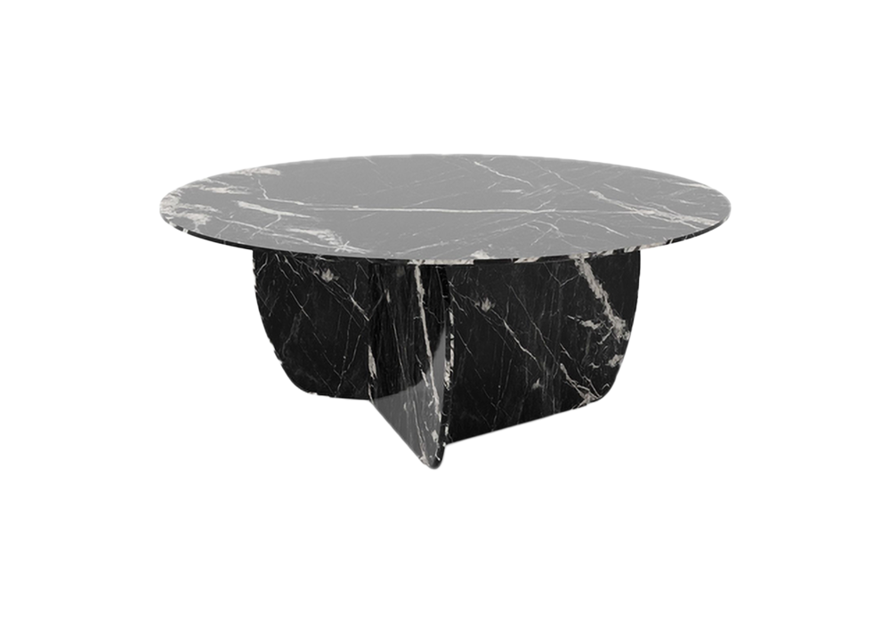 Coral von Arik Levy für Punt entworfen, ist ein Couchtisch aus Nero Marquina-Marmor.