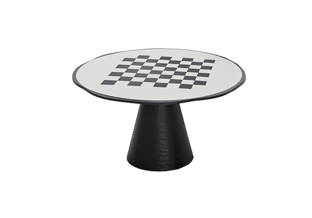 Scacco von Pier Luigi Frighetto für Pianca entworfen, ist ein Beistelltisch aus Massivholz, der an die Formen eines Gaming-Stücks erinnert. Der konische Sockel trägt eine Platte mit wellenförmigem Profil, in der sich eine eingelassene, lackierte Platte befindet, deren Materialien und Farben mit der Struktur kontrastieren. Im unteren Teil der Tischplatte erleichtert eine Nut den Halt des Tisches, der für neue Konfigurationen leicht im Raum verschoben werden kann. Verfügbar in zwei mehreren Abmessungen.