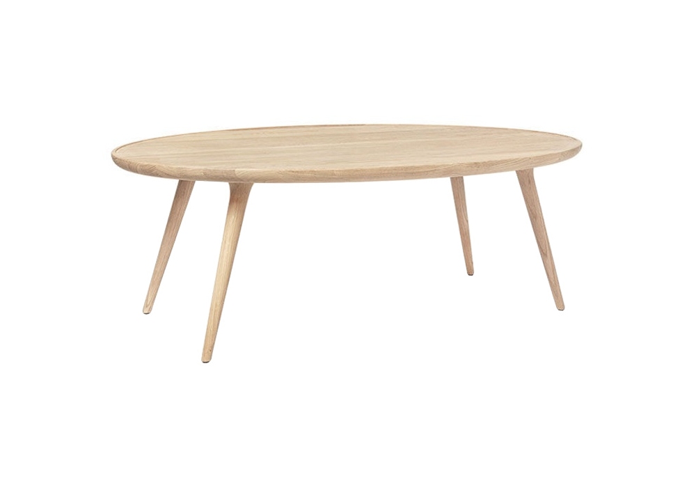 Accent von Space Copenhagen für Mater entworfen, ist ein ovaler Couchtisch aus FSC-zertifizierter Eiche. Erhältlich in verschiedenen Ausführungen.