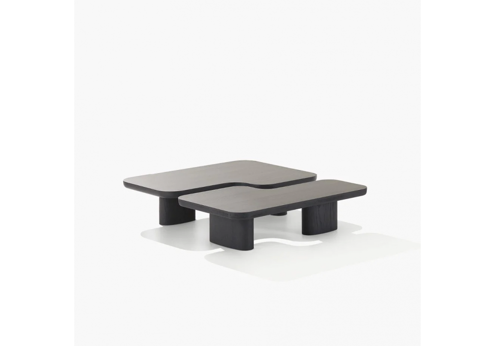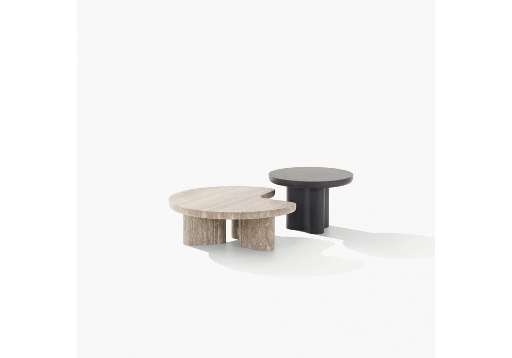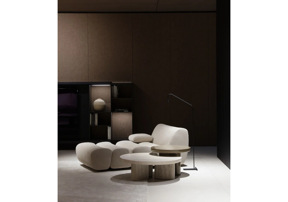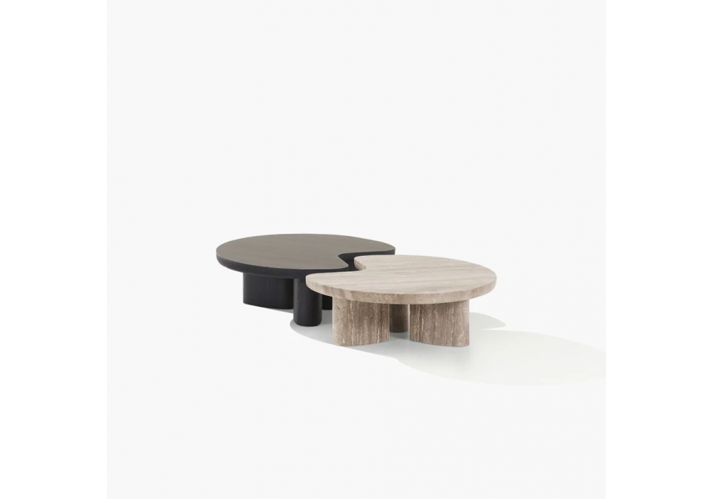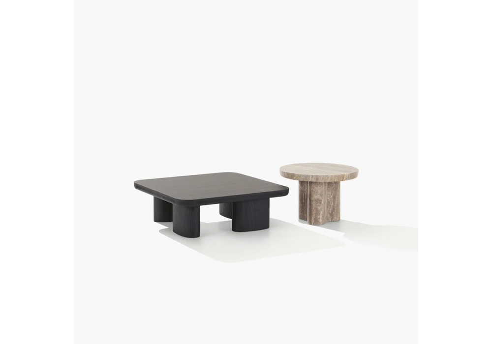 Ernest von Jean Marie Massaud für Poliform entworfen, stammt aus derselben Kollektion wie die Sofas. Beine in matt lackierten Farben, glänzend lackierten Farben, Massivholz gebeizt in schwarzer Ulme oder in klassischem Travertinmarmor und mattem iranischem Travertin. Tischplatte in matt lackierten Farben, glänzend lackierten Farben, schwarzer Ulme oder klassischem Travertin oder Titantravertin. Diese Couchtische können in der Mitte des Raums platziert werden, um den Wohnbereich dynamischer zu gestalten, oder einzeln neben dem Ernest-Sofa verwendet werden.