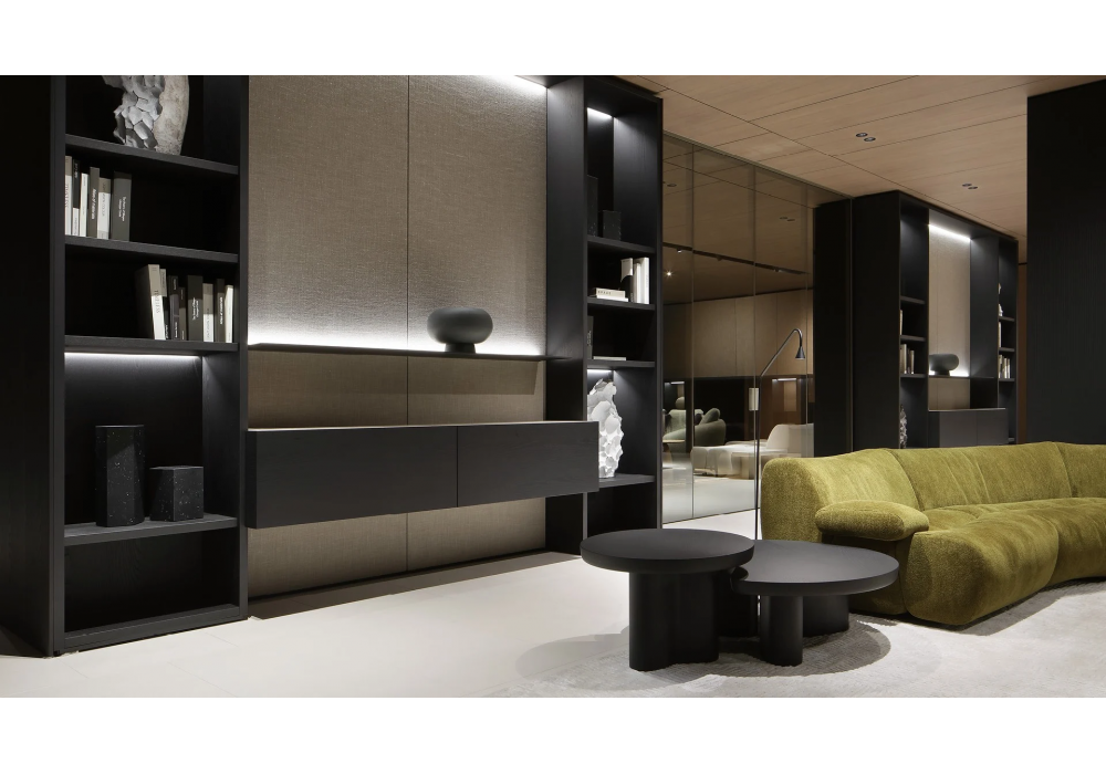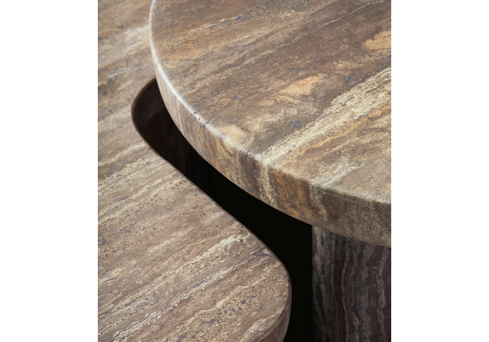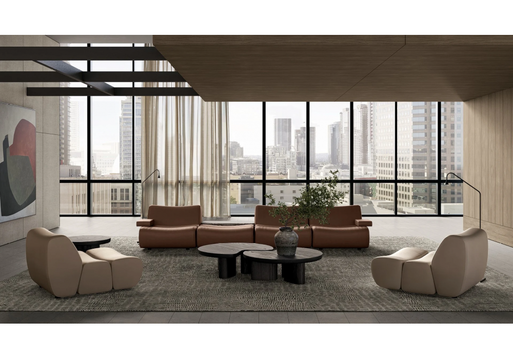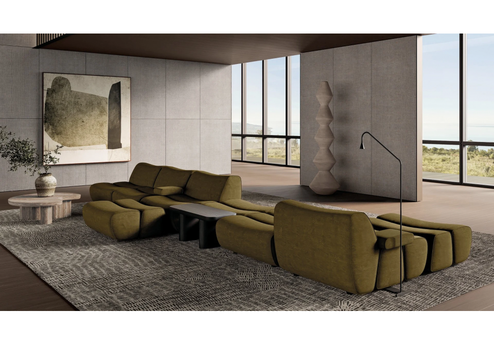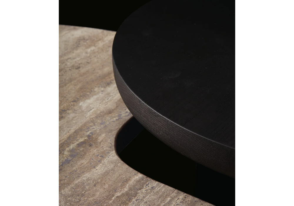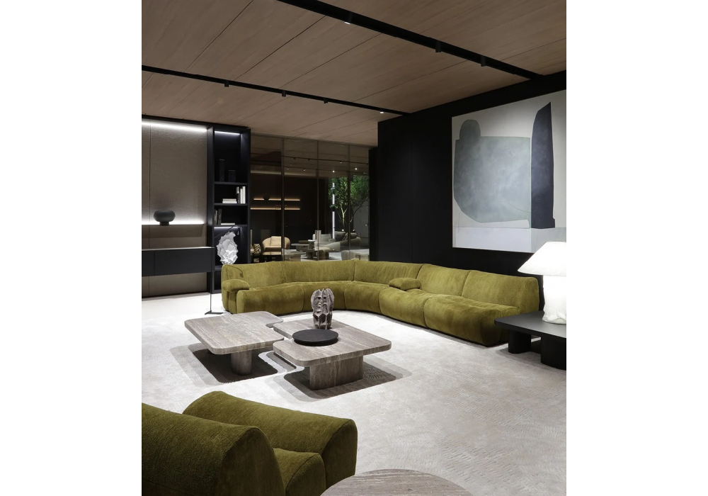 Ernest von Jean Marie Massaud für Poliform entworfen, stammt aus derselben Kollektion wie die Sofas. Beine in matt lackierten Farben, glänzend lackierten Farben, Massivholz gebeizt in schwarzer Ulme oder in klassischem Travertinmarmor und mattem iranischem Travertin. Tischplatte in matt lackierten Farben, glänzend lackierten Farben, schwarzer Ulme oder klassischem Travertin oder Titantravertin. Diese Couchtische können in der Mitte des Raums platziert werden, um den Wohnbereich dynamischer zu gestalten, oder einzeln neben dem Ernest-Sofa verwendet werden.