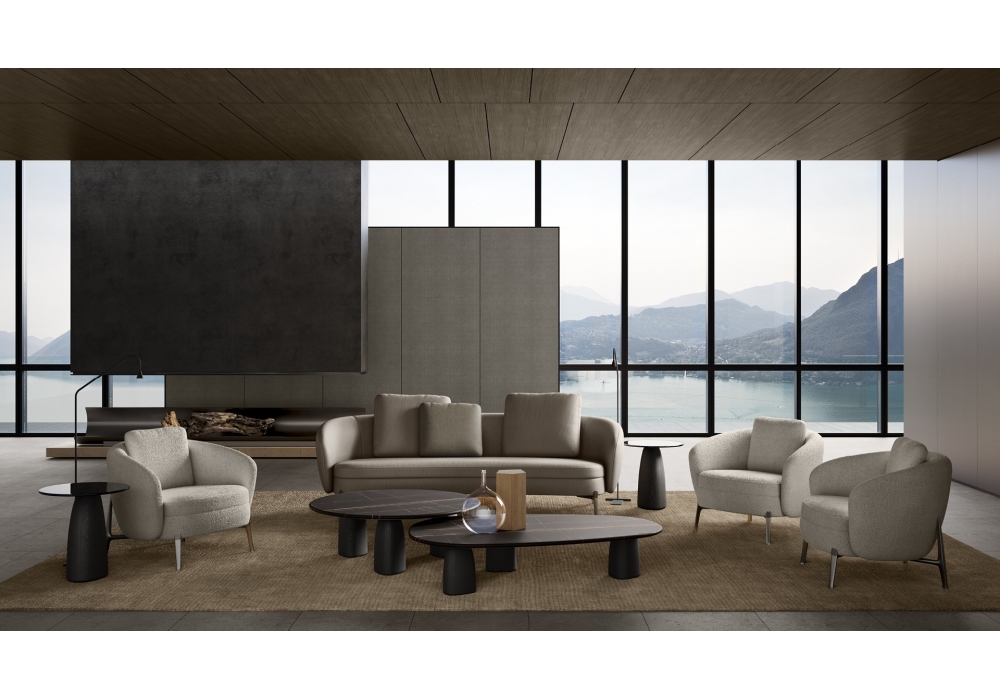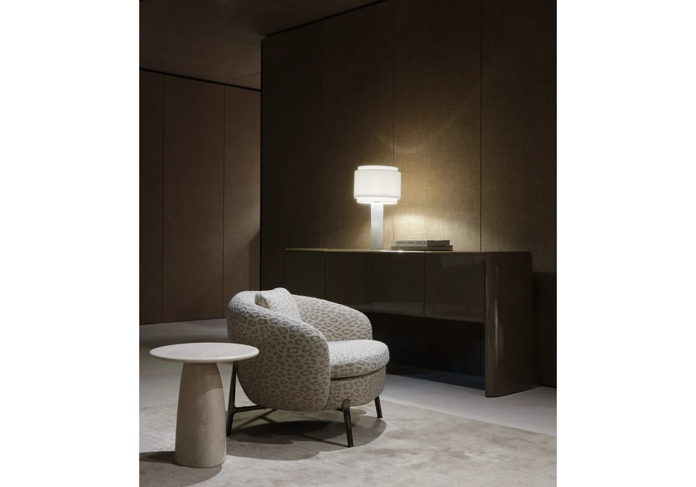 Strata Indoor von Emmanuel Gallina für Poliform entworfen, ist ein Couchtisch für den Innenbereich mit Beinen aus schwarzem Ulmenholz oder mattem Travertino Classico-Marmor. Platte aus schwarzer Ulme oder mattem und glänzendem Marmor. Auch verfügbar in verschiedenen Abmessungen.