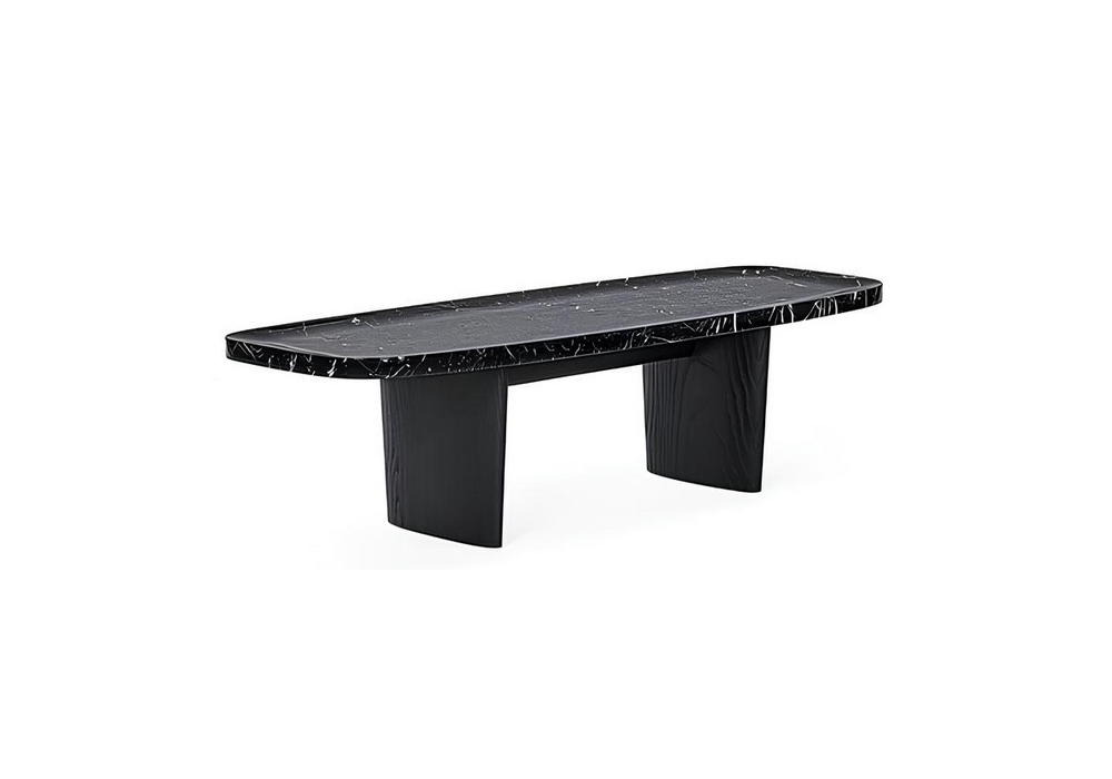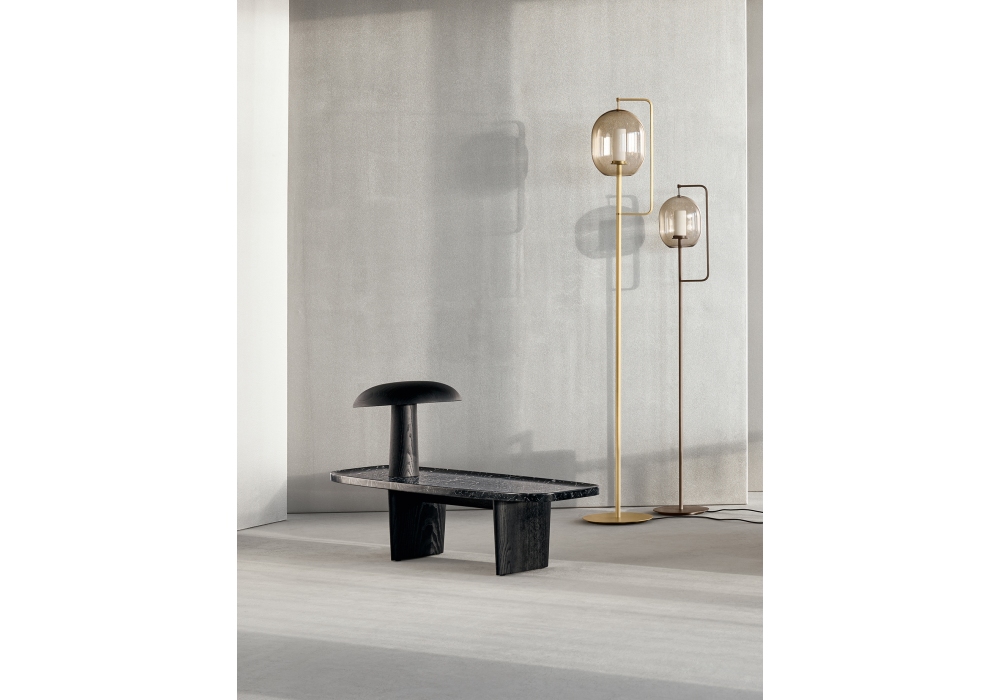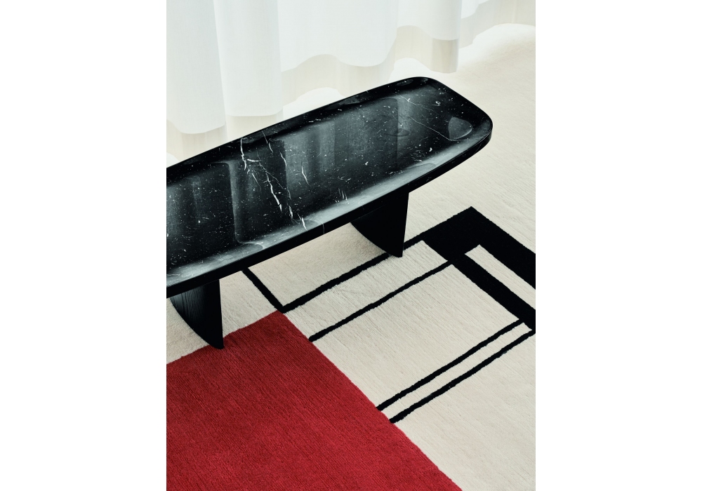 Matéria Marble von Christian Haas für ClassiCon entworfen, ist ein Couchtisch mit schwarz lackierter massiver Eschenstruktur, Marmorplatte und schwarz lackiertem Metalltischgestell. Erhältlich in verschiedenen Größen.