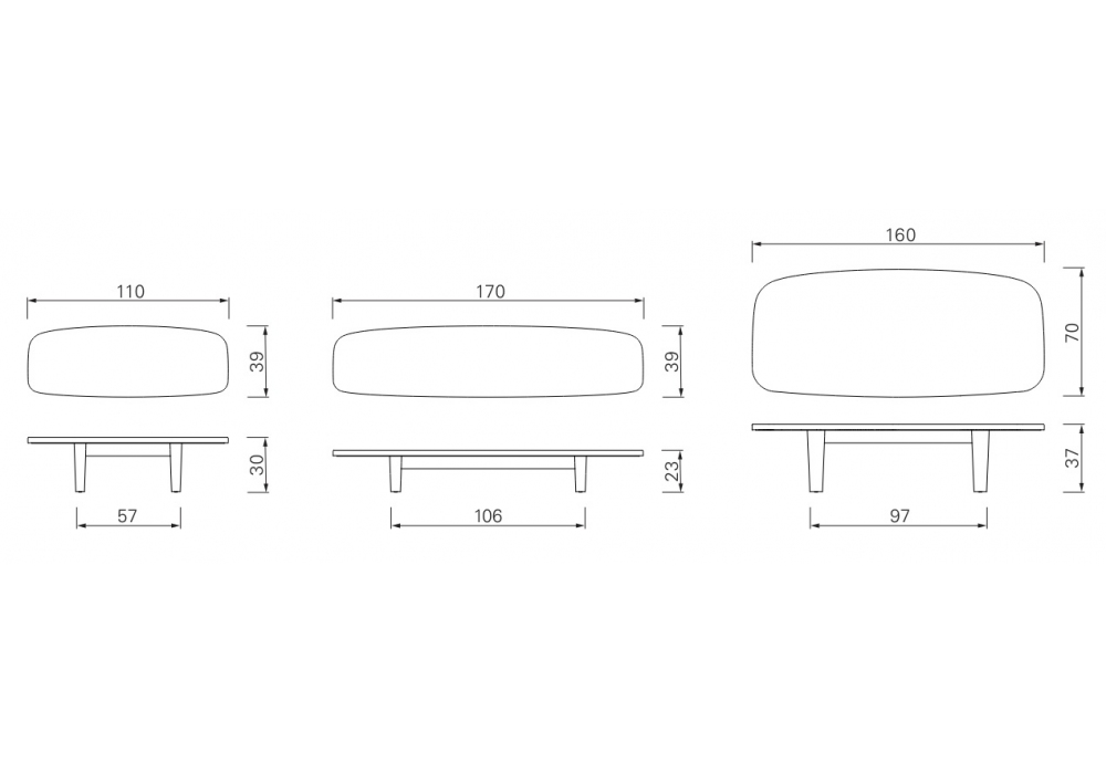| Abmessungen | • 110 x 39 x H 30 cm; • 170 x 39 x H 23 cm; • 160 x 70 x H 37 cm |
