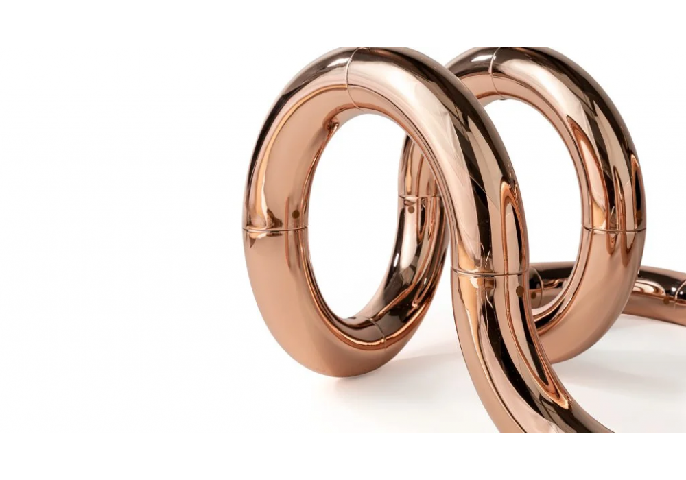 Aenigma 40 von Reflex Angelo entworfen, ist ein Couchtisch mit einer Basis aus gebogenen Elementen aus satiniertem oder dunklem Messing oder aus poliertem Kupfer oder schwarzem Nickel. Glasplatte. Verfügbar in mehreren Ausführungen und Abmessungen.