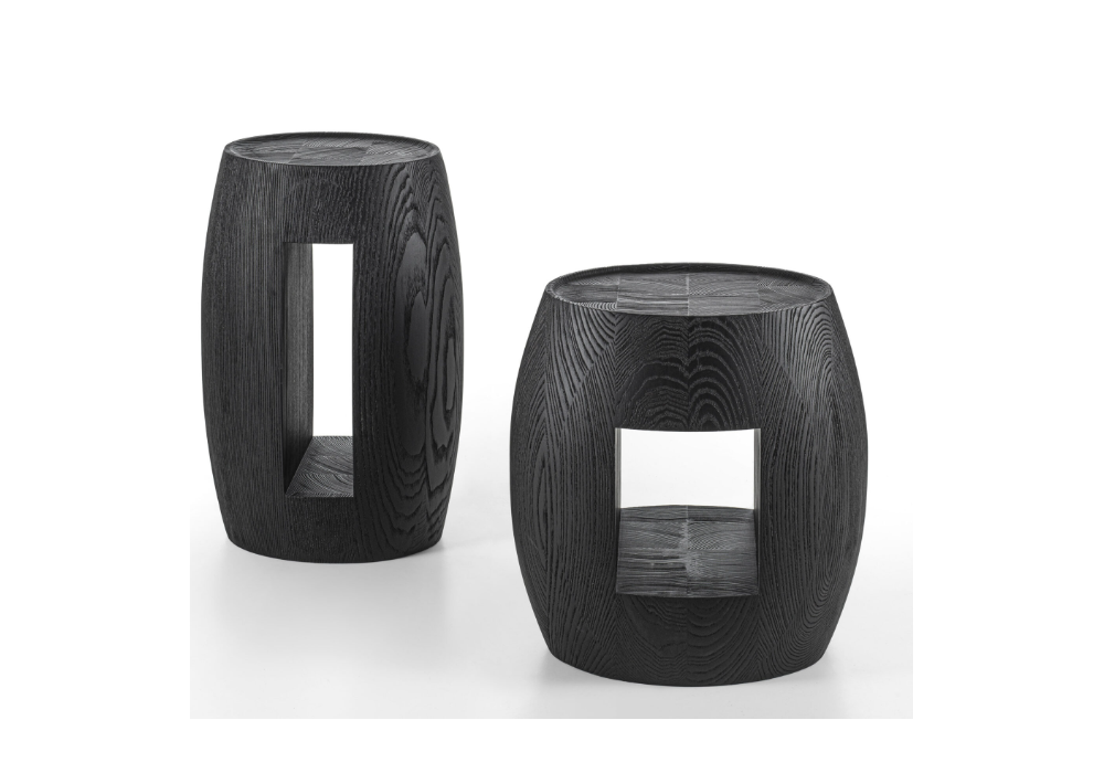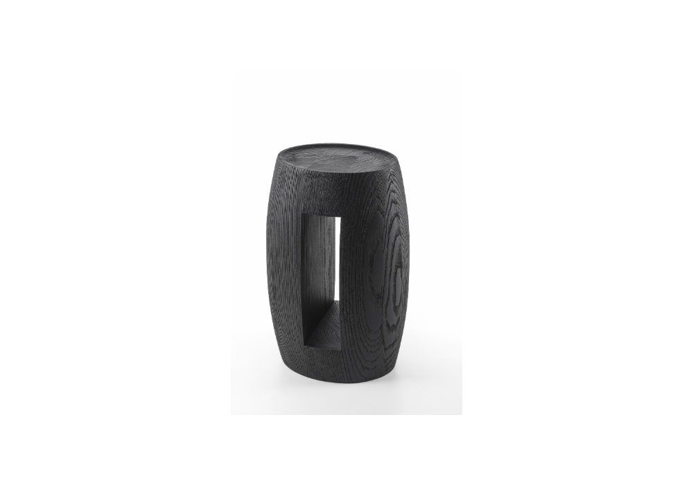 Bold von G. Viganò für Porada entworfen, ist ein tonnenförmiger Beistelltisch mit einer zentralen Vertiefung. Er besteht aus massiver gebürsteter Esche in verschiedenen Ausführungen. Die Platte ist mit einer leichten Profilleiste versehen.