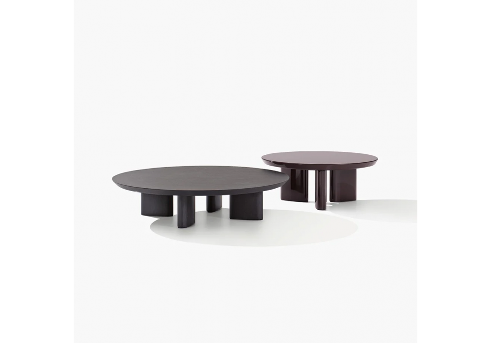 Adrien von Jean Marie Massaud für Poliform entworfen, ist ein Couchtisch mit einer Struktur aus Massivholz schwarz gebeizter Ulme, glänzend lackiertem Metall in verschiedenen Farben oder matt und glänzend lackiertem Metall in hellem oder dunklem Transparent. Platte in glänzend lackierten Farben oder schwarzer Ulme.