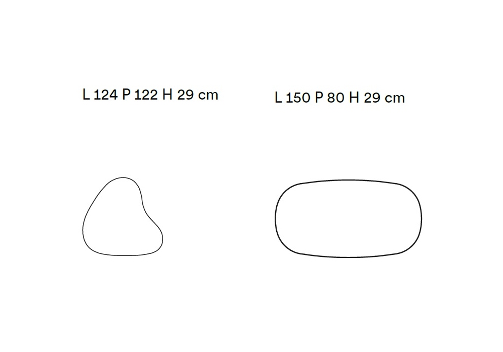 | Abmessungen | Gian_ 124 x 122 x H 29 cm; Pan_ 150 x 80 x H 29 cm. |