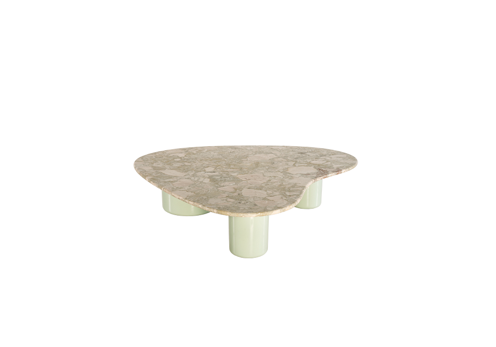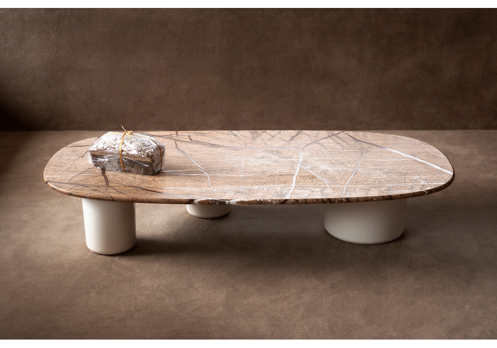 Gian & Pan von Studiopepe für Tacchini entworfen, ist eine Kollektion von Beistelltischen mit einer Marmorplatte und einem Betonsockel.