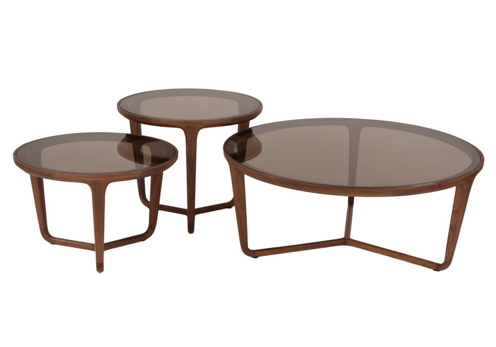 Stella di Ceccotti Collezioni is a round coffee table in solid american walnut. Top available in transparent, bronzed or smoked glass. Available in 3 sizes.