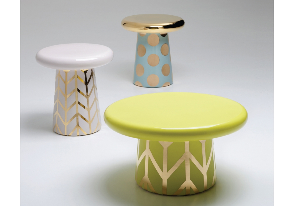T-table Special Edition ,von Jaime Hayon für Bosa entworfen, ist ein Couchtisch en Keramik mit speziellen Dekorationen, funktional und einfach, perfekt, um neben einem Stuhl, einem Sofa oder einem Liegestuhl platziert zu werden. T-table kann auch in einer Gruppe arrangiert werden, wie Pilze im Wald und ist Verfügbar in mehreren Ausführung und Abmessungen.