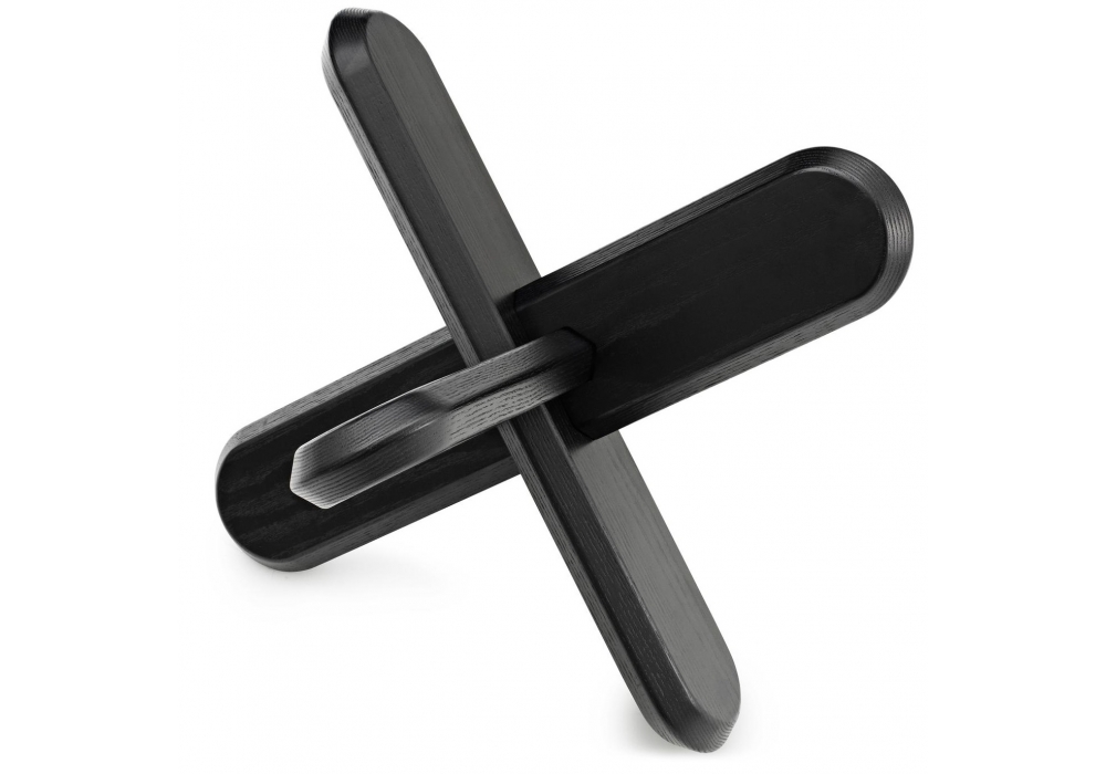 Ding von Rudolph Schelling Webermann für Normann Copenhagen entworfen, ist ein Couchtisch, strukturiert durch drei sich kreuzende Eichenholzplanken, mit einer runden Platte aus transparentem oder Rauchglas. Ding ist in verschiedenen Holzausführungen erhältlich.
