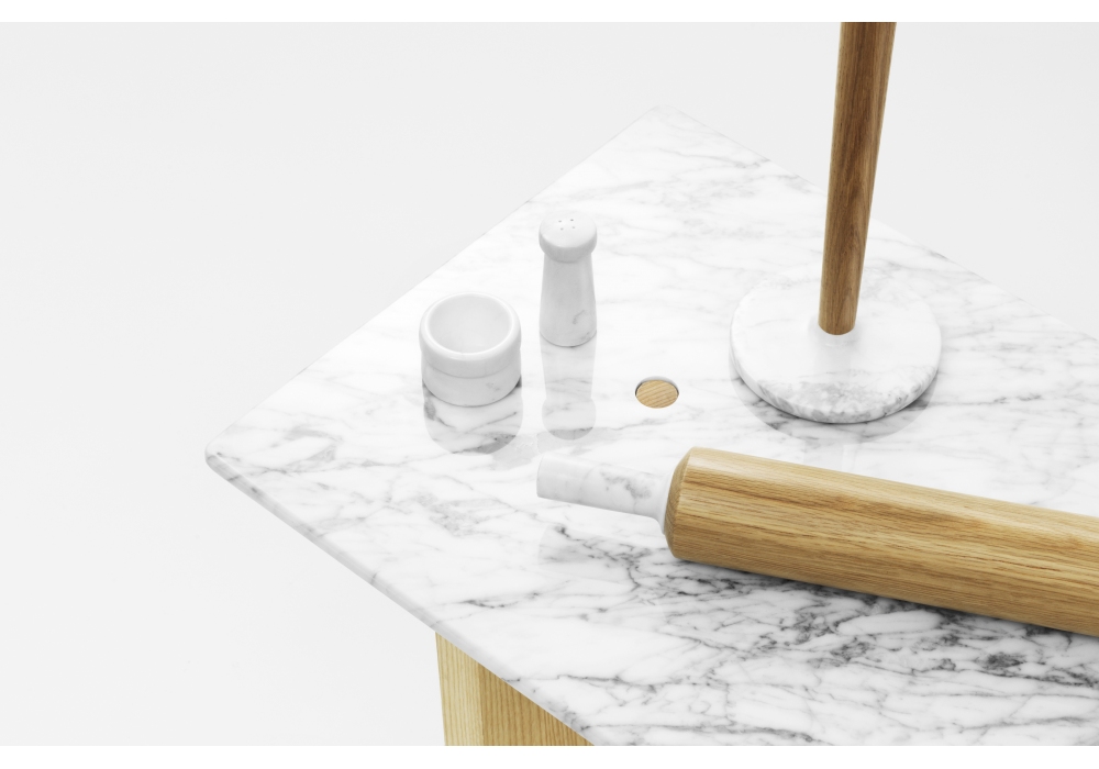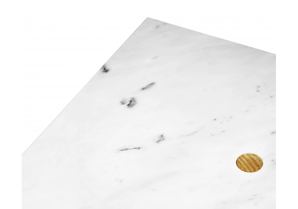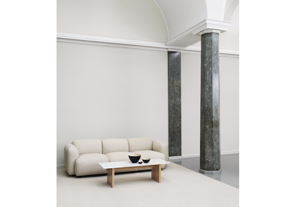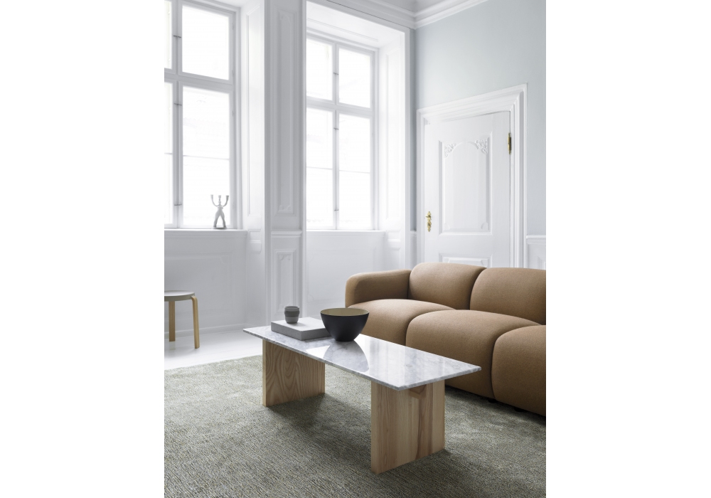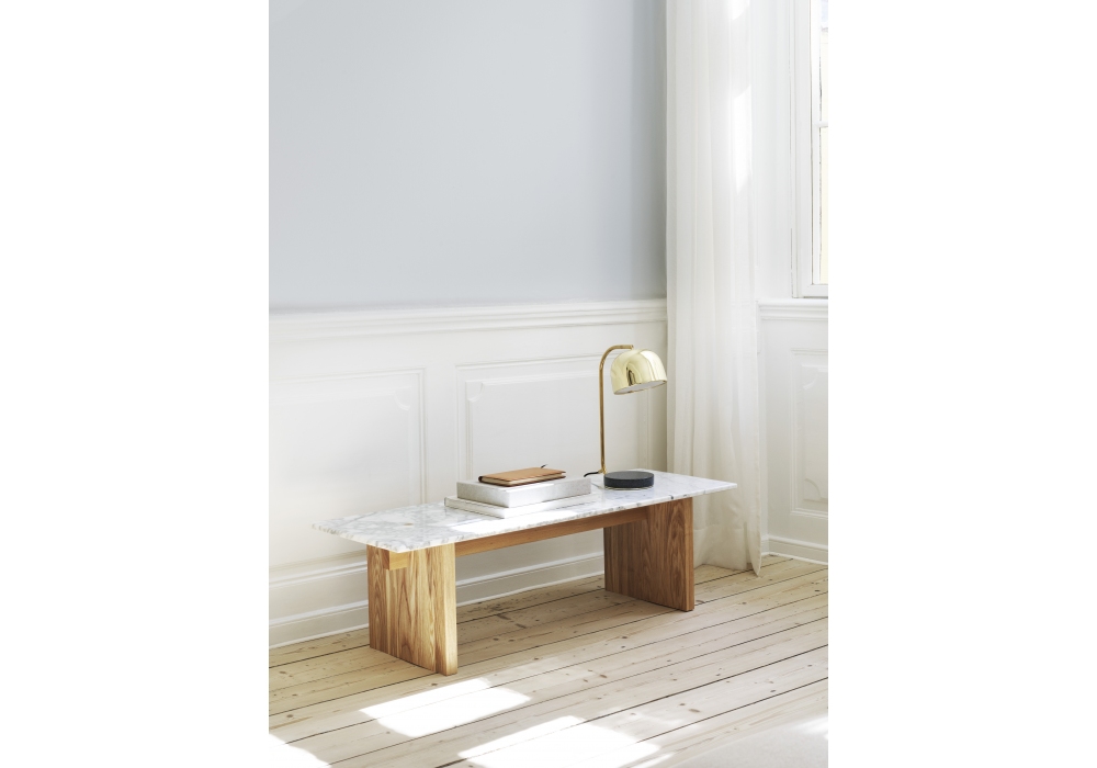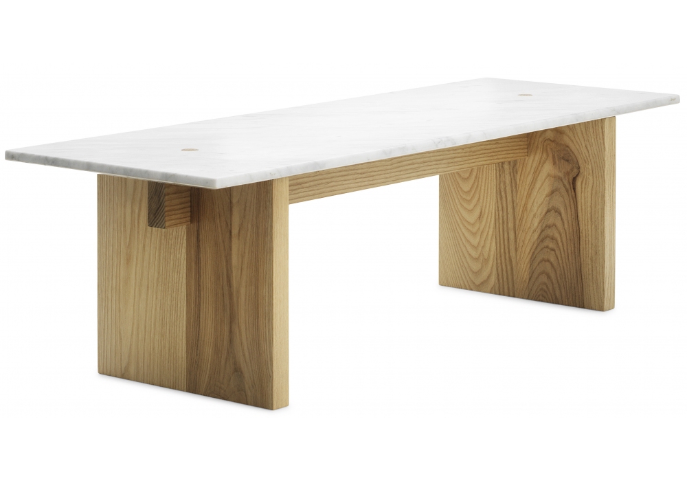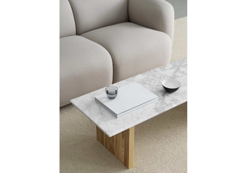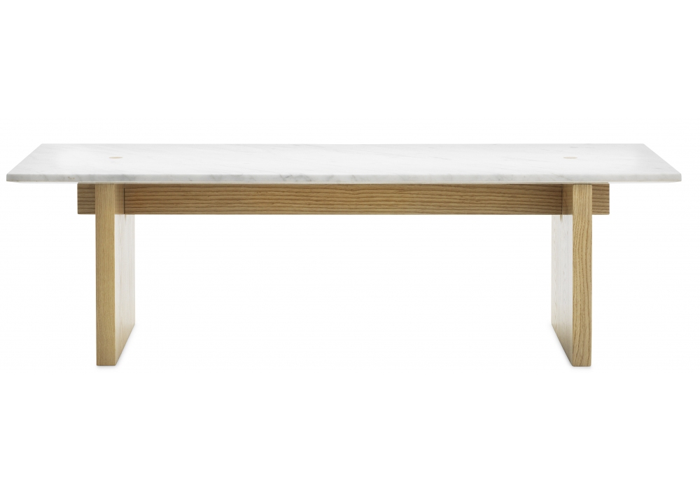 Solid, von Lars Beller Fjetland für Normann Copenhagen entworfen, ist ein Couchtisch mit viereckiger Struktur aus lackiertem Eichenholz und Tischplatte aus Marmor.