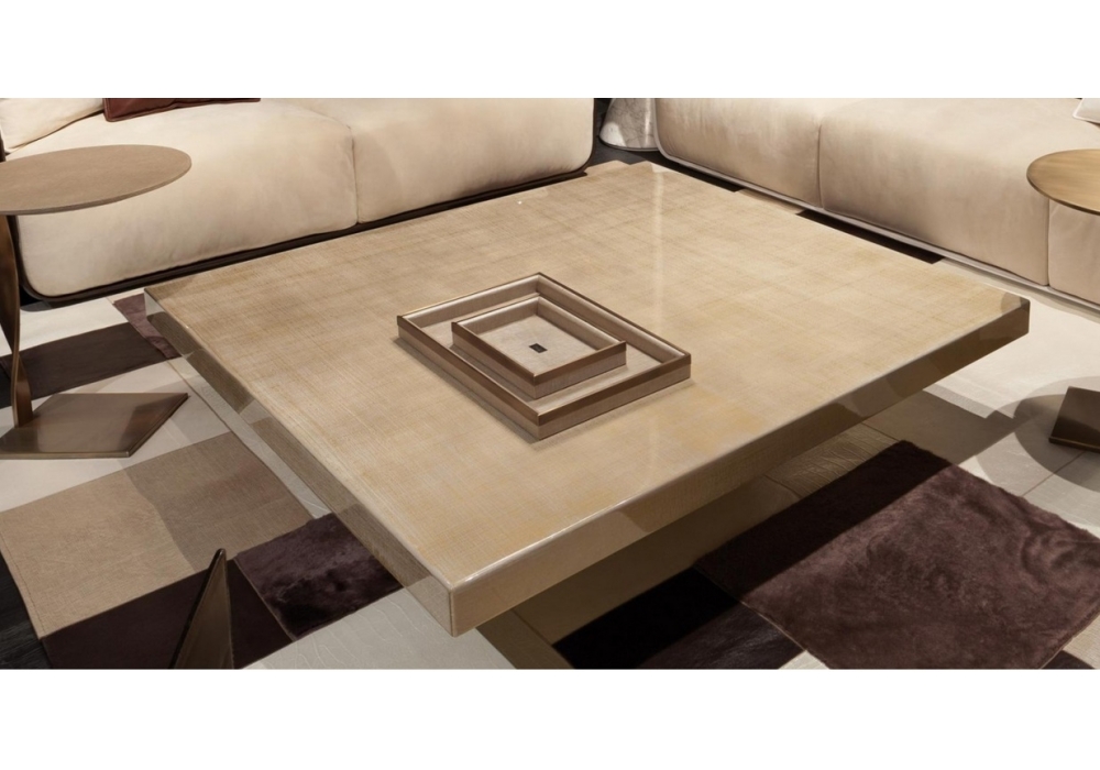 Decoro von Rugiano entworfen, ist ein Couchtisch mit Platte aus Sonderfarben in verschiedenen Ausführungen und lackierten Holzfüßen. Erhältlich in verschiedenen Größen.