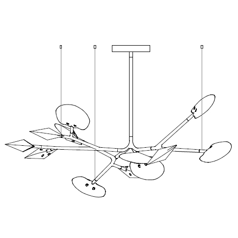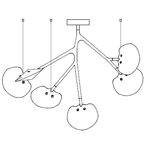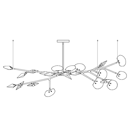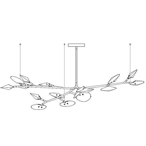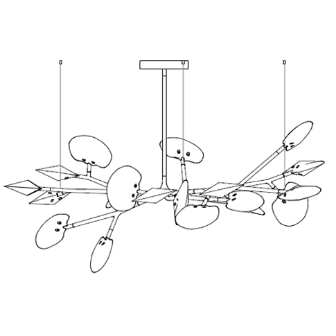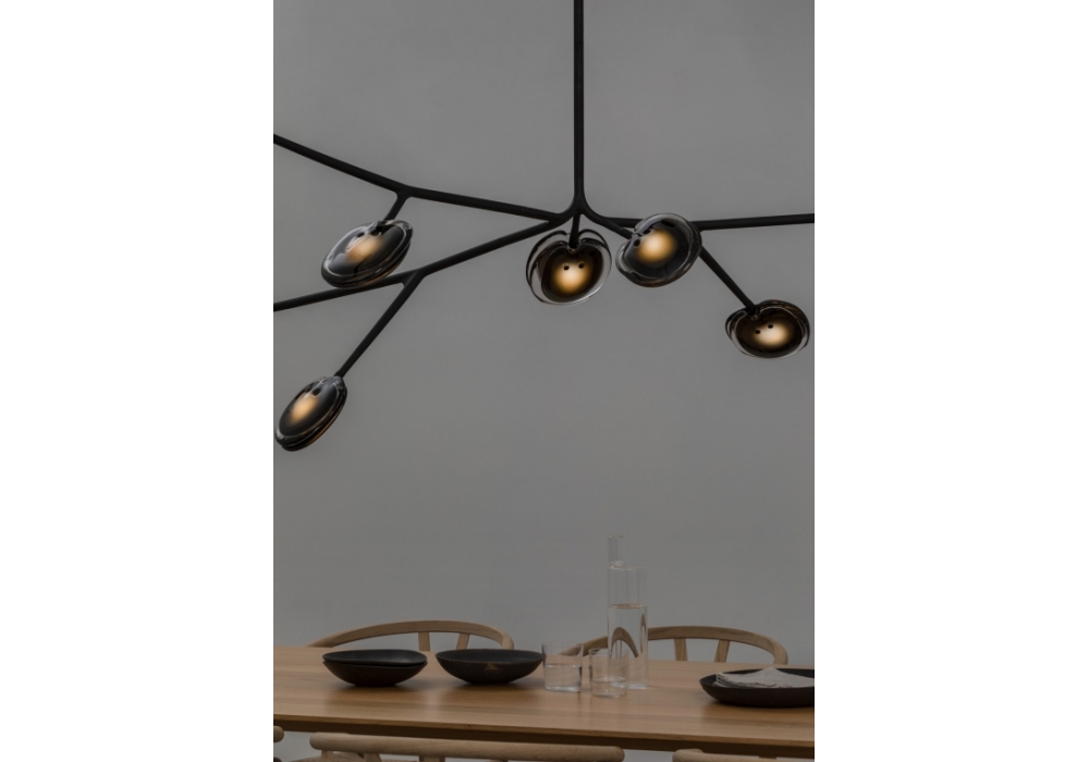 Serie 16 von Omer Arbel für Bocci entworfen, ist eine Deckenleuchte erhältlich in verschiedenen Ausführungen. Die Serie 16 besteht aus einer modularen Armatur, die die Glasdiffusoren oder die Blätter durch eine mattschwarz lackierte Struktur verbindet, die sich zu einer Reihe von Zweigen und Stielen entwickelt. Jedes Segment trägt Niederspannungsenergie und entfaltet sich in verschiedenen Zweigen, um eine horizontale und vertikale Entwicklung in einer unendlichen Vielfalt möglicher Formen zu ermöglichen. Jedes Blatt ist ein Meisterwerk an Einfallsreichtum und Handwerkskunst und ist in 4 verschiedenen Ausführungen erhältlich.