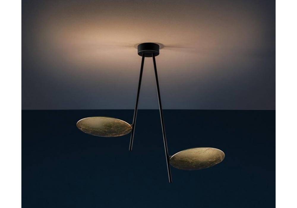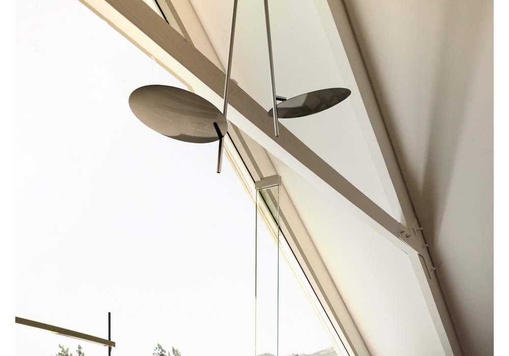 Lederam C2, für Catellani&Smith entworfen, ist eine Deckenleuchte mit Scheibe aus Aluminium. Stab und Basis (Deckenrosette) aus Metall. Verfügbar in verschiedenen Ausführung.