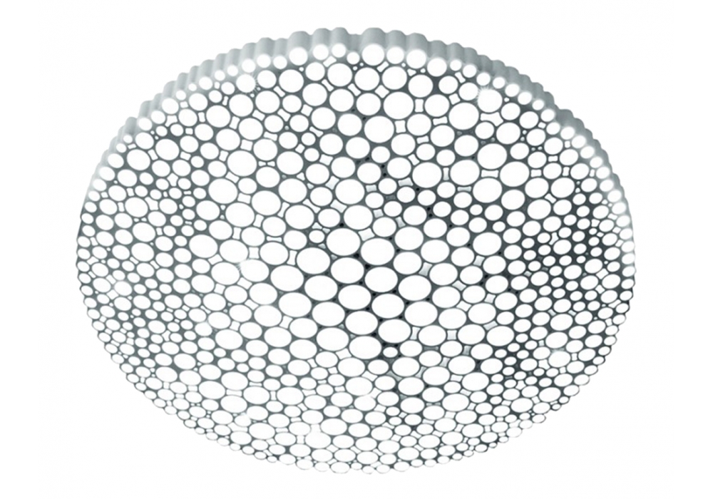 Calipso von Neil Poulton für Artemide entworfen ist eine runde Decken- oder Wandleuchte, die vollständig aus Technopolymer besteht. Die verwendete Lichtquelle ist eine LED mit Push- oder Ferndimmbarkeitssystem über die Artemide-App. Calipso ist in verschiedenen Lichttönen erhältlich.