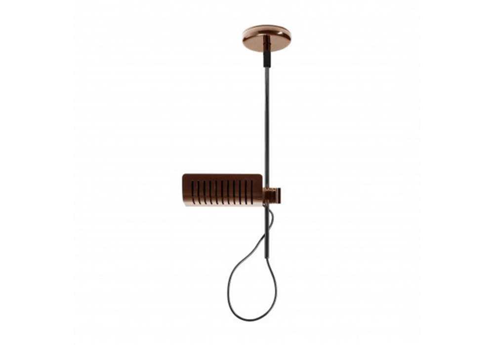 Colombo von Joe Colombo für Oluce entworfen ist eine Deckenleuchte mit Stahlhalterung und vertikalem Stab aus verchromtem Metall. Der Diffusor aus lackiertem Aluminium ist verstellbar und schirmt eine LED-Lichtquelle ab. Colombo ist in verschiedenen Ausführungen erhältlich.