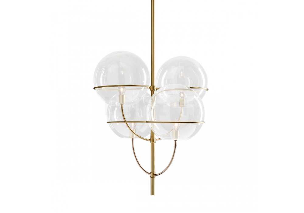Lyndon von Vico Magistretti für Oluce entworfen ist eine Deckenleuchte mit Tragstruktur aus lackiertem Metall. Die Diffusoren sind kugelförmig aus transparentem Glas und beherbergen eine Lichtquelle. Lyndon ist in verschiedenen Ausführungen erhältlich.