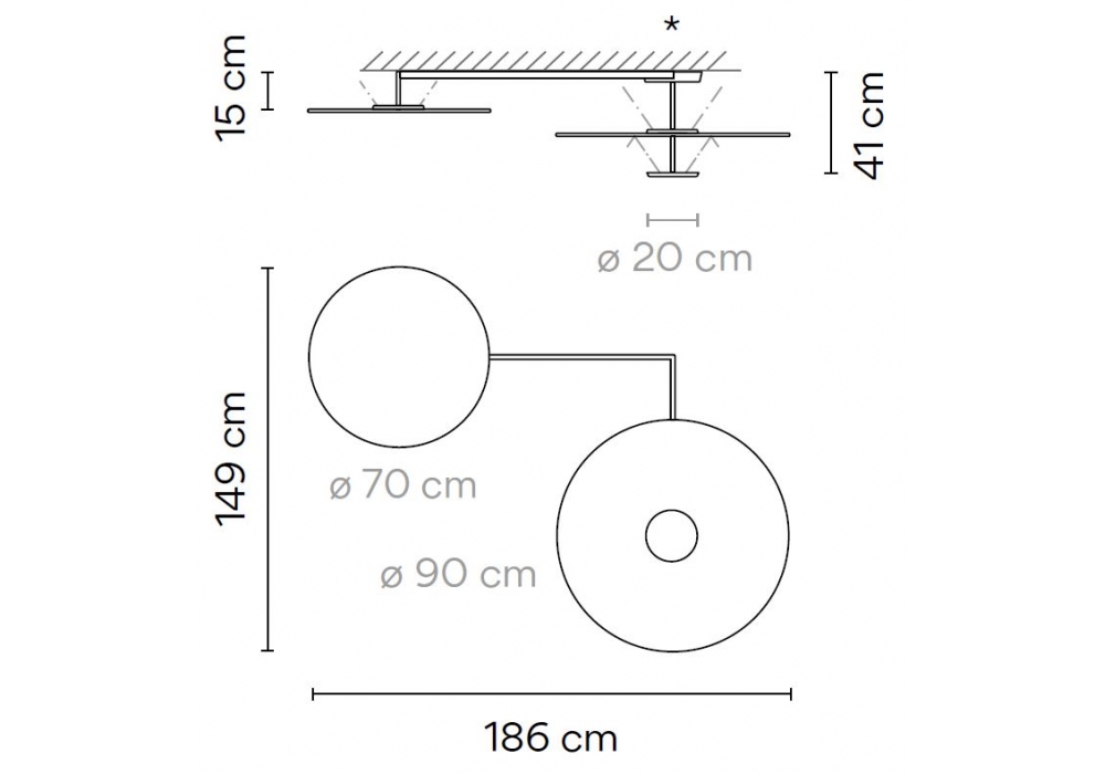 Flat 5924 von Ichiro Iwasaki für Vibia entworfen ist eine Deckenleuchte mit Aluminiumrosette und lackierter Stahltragstruktur. Die Diffusoren sind kreisförmig geformt und aus Polycarbonat gefertigt und schirmen die dimmbaren LED-Lichtquellen ab. Flat 5924 ist in verschiedenen Ausführungen, Farbtönen der Lichtquelle und Dimmbarkeit erhältlich.