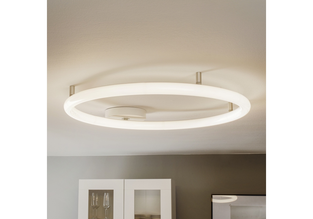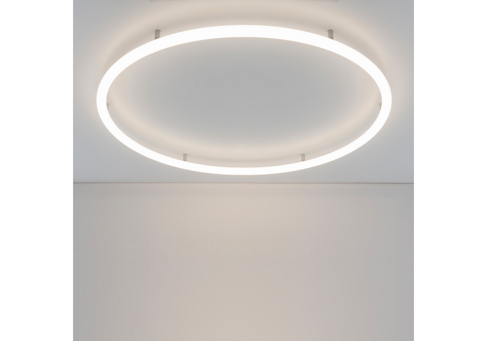 Alphabet of Light von BIG für Artemide entworfen ist eine Halbeinbau-Steh- oder Deckenleuchte die mit linearer oder kreisförmiger Struktur in verschiedenen Größen erhältlich ist. Die verwendete Lichtquelle ist vom Typ LED mit verschiedenen Arten der Dimmbarkeit.