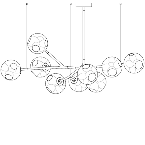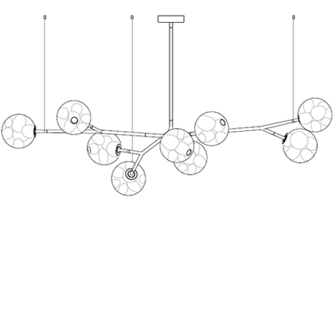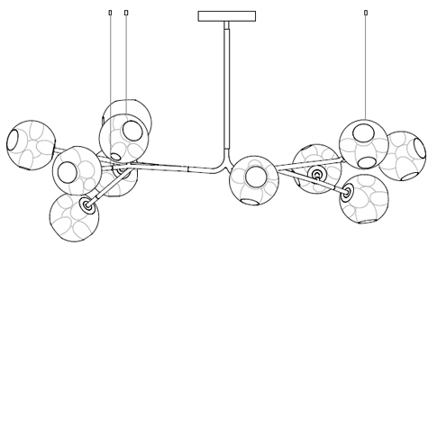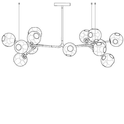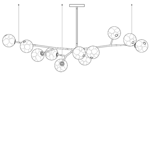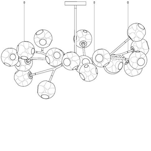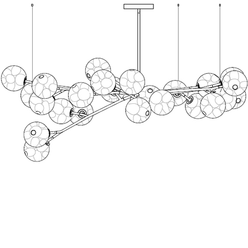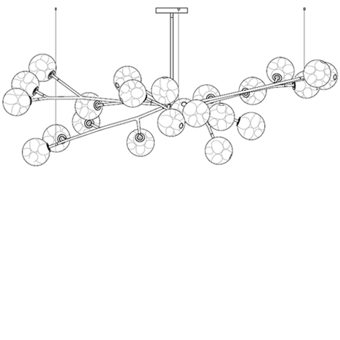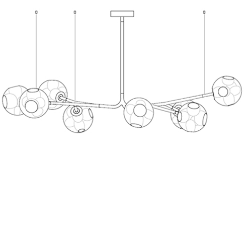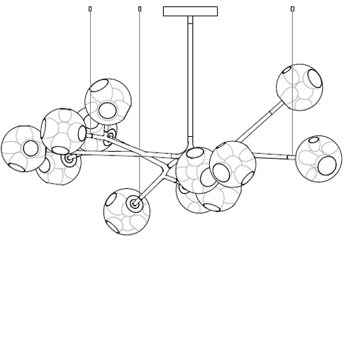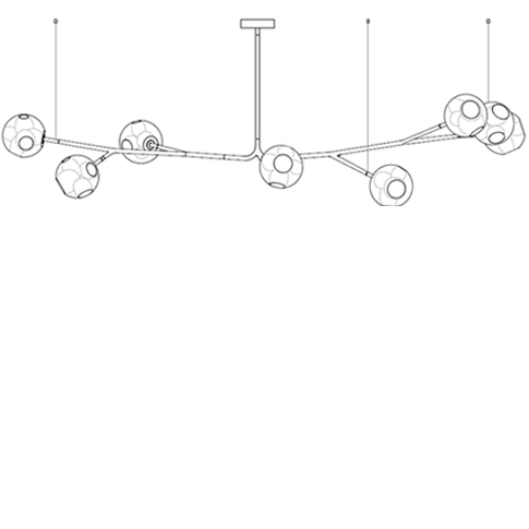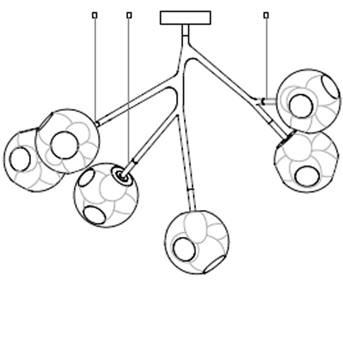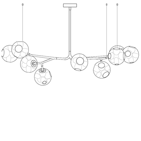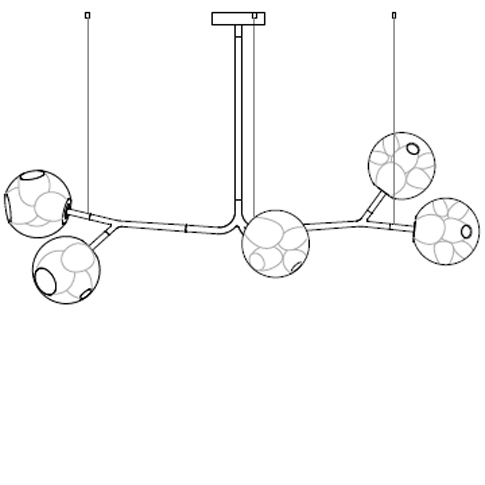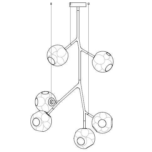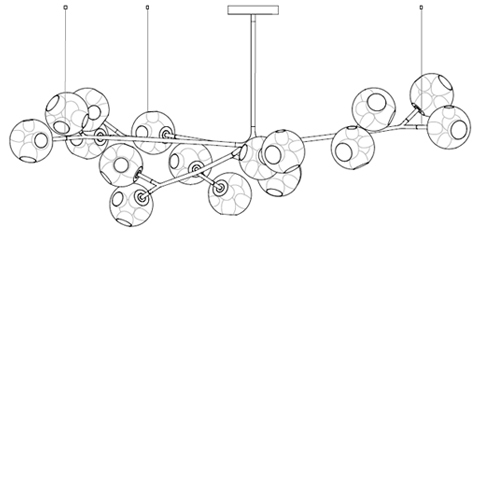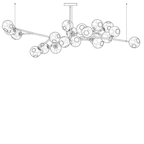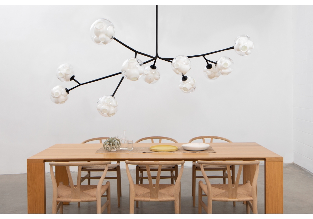 38V von Omer Arbel für Bocci entworfen, ist eine Deckenleuchte mit röhrenförmiger Struktur aus Edelstahl und mattschwarzer Soft-Touch-Oberfläche. Die Diffusoren sind aus mundgeblasenem Glas mit LED-Lichtquelle. 38V ist in verschiedenen Ausführungen erhältlich.