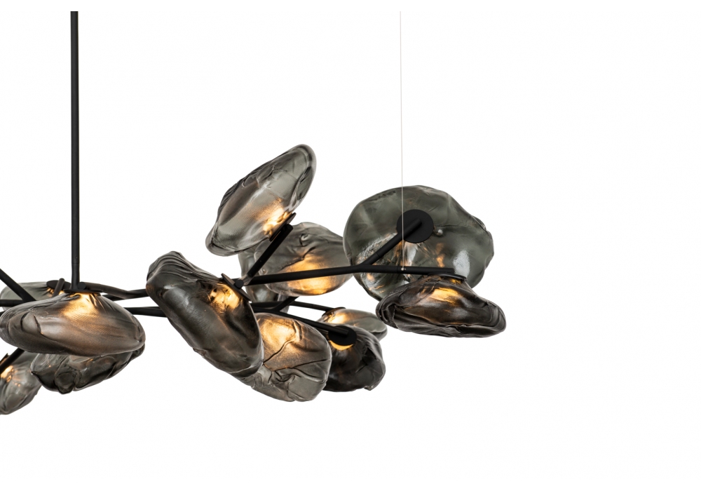 73 von Omer Arbel für Bocci entworfen, ist eine Deckenleuchte mit röhrenförmiger Struktur aus Edelstahl und mattschwarzer gummierter Oberfläche. Die Diffusoren sind aus mundgeblasenem Glas mit LED-Lichtquelle. 73 ist in verschiedenen Ausführungen erhältlich.